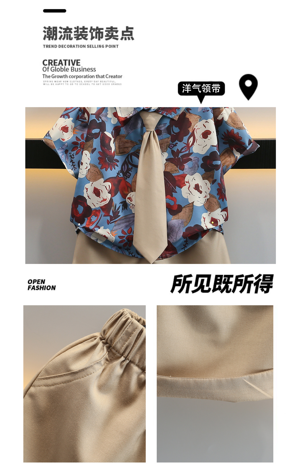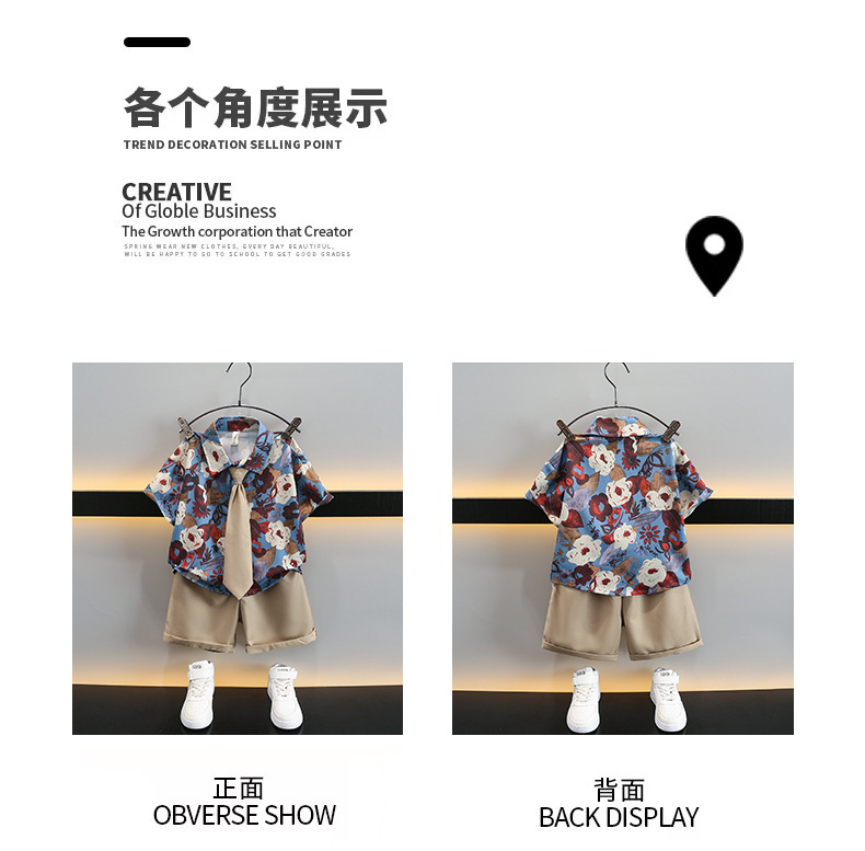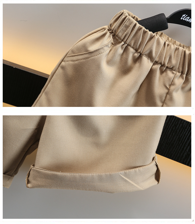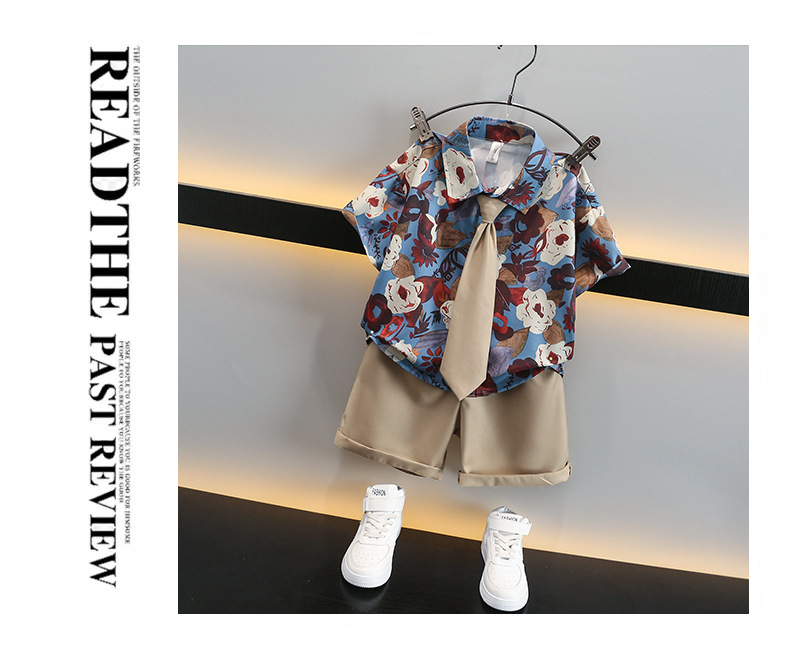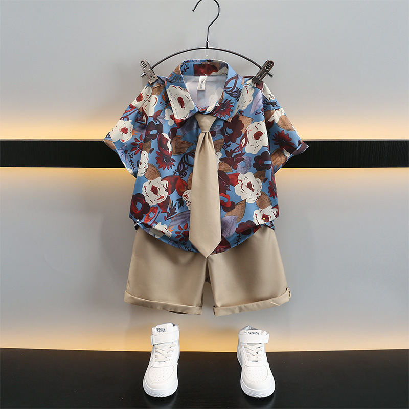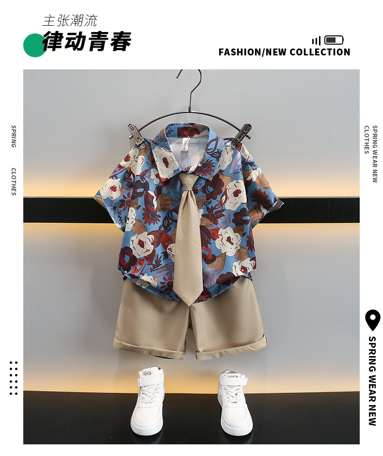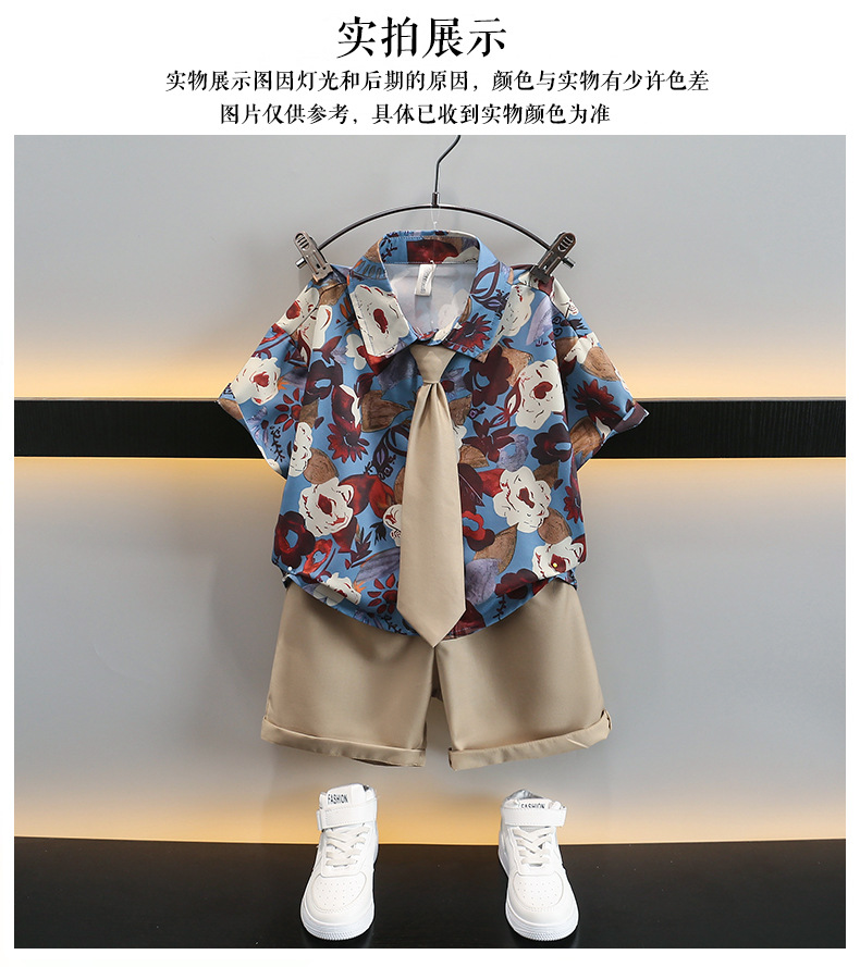 어린이 여름 카키 넥타이 세트 2024 여름 새로운 대외 무역 아동복 매체 및 작은 아이들의 외국 잘 생긴 아기 옷스토어 가기