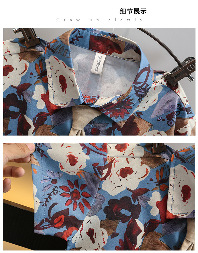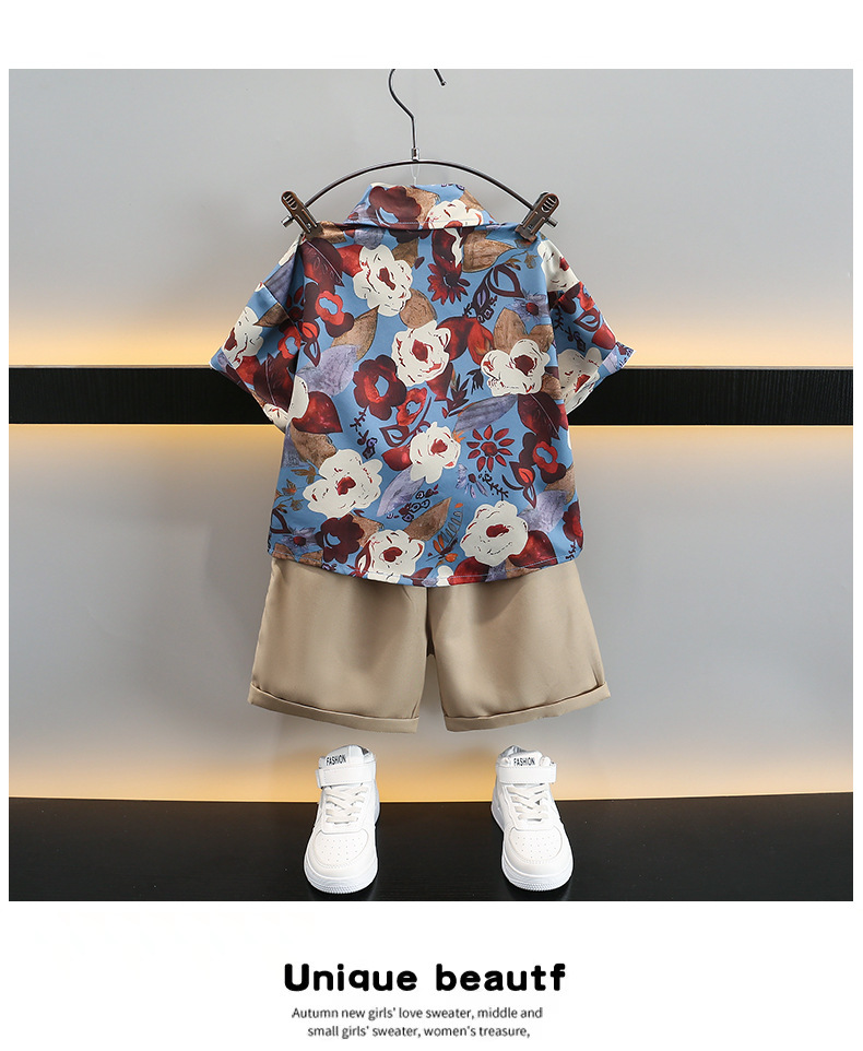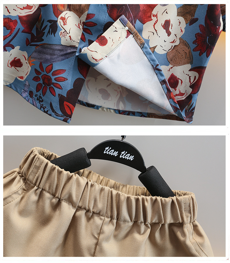 어린이 여름 카키 넥타이 세트 2024 여름 새로운 대외 무역 아동복 매체 및 작은 아이들의 외국 잘 생긴 아기 옷