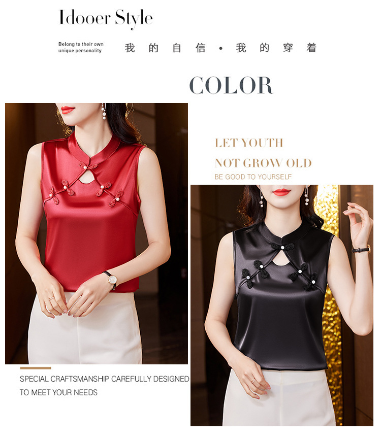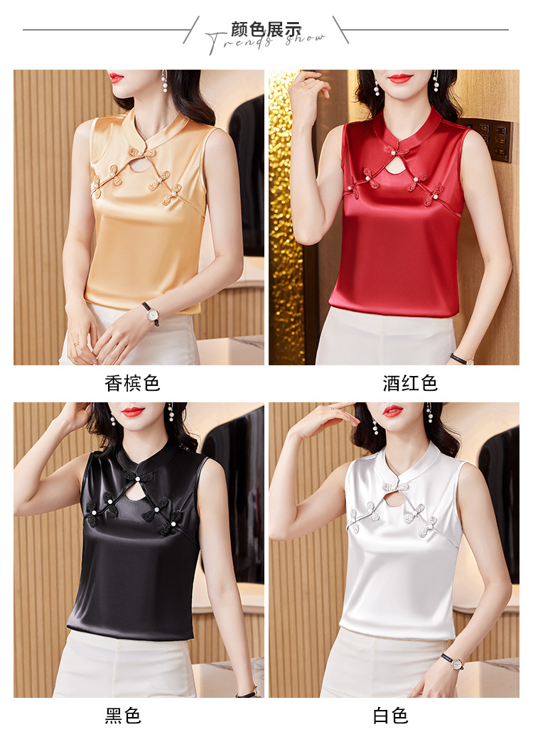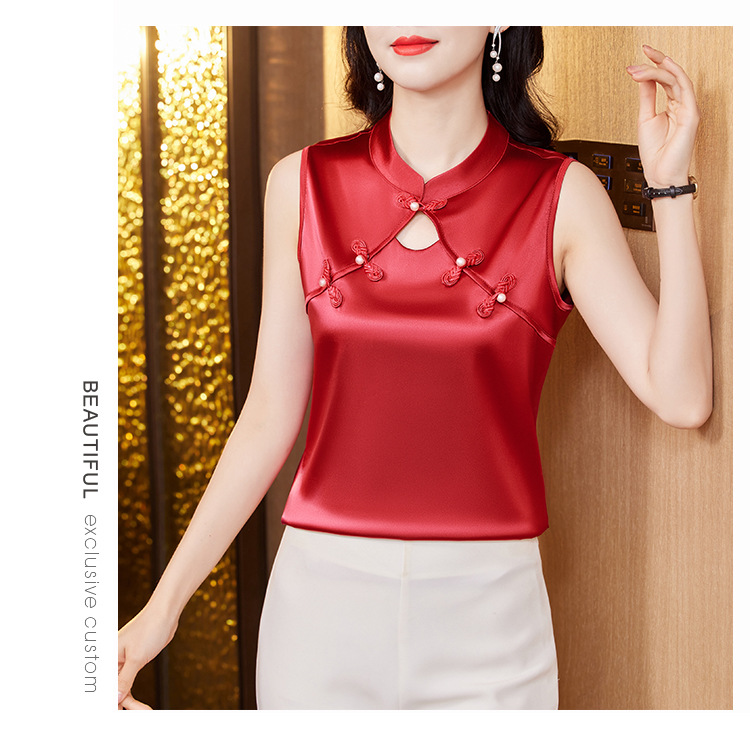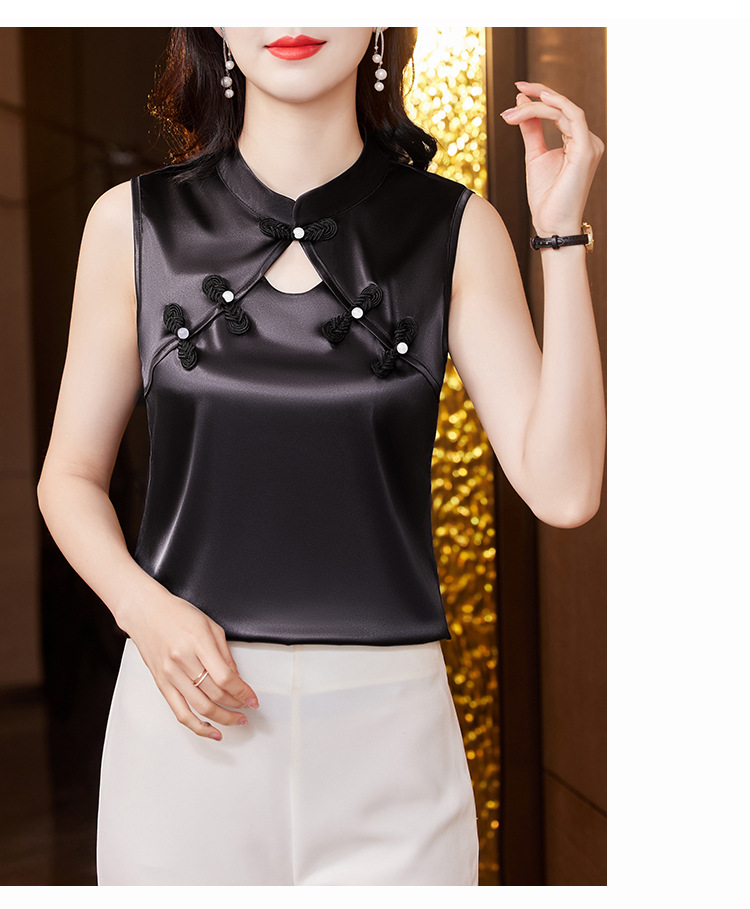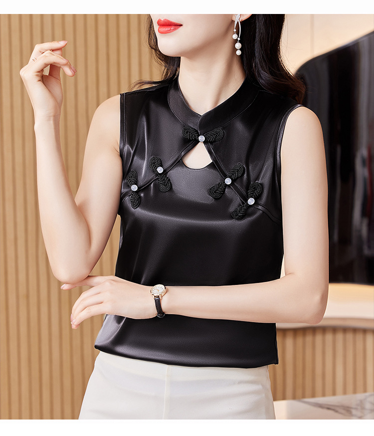 2024 블랙 캐미솔 여성용 세트 내복 봄과 여름 실크 새틴 플러스 사이즈 구슬 틈새 바닥 셔츠 도매스토어 가기