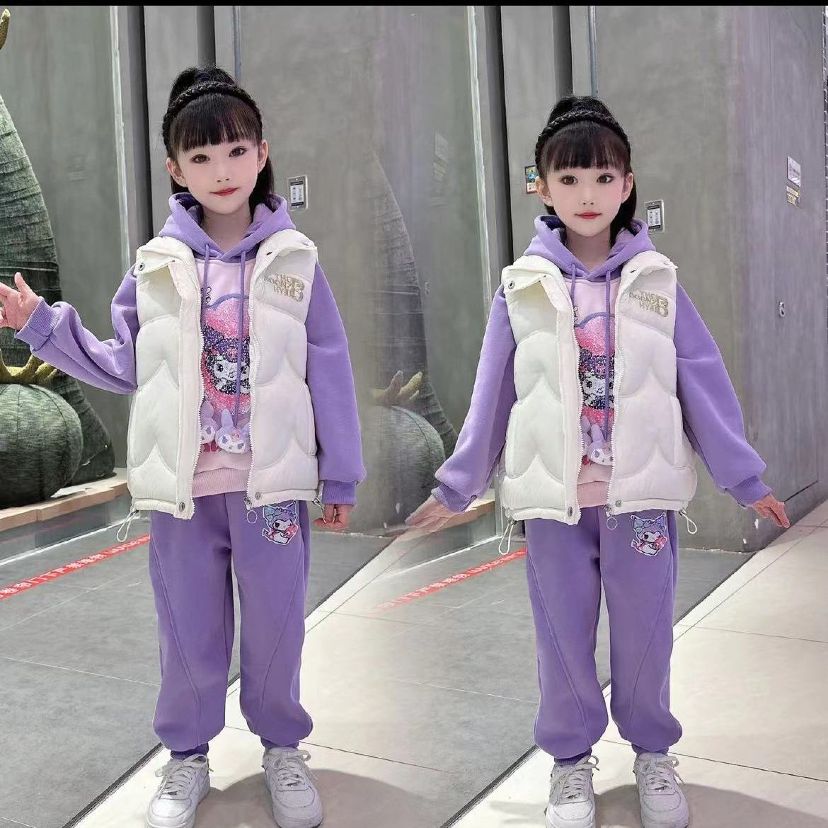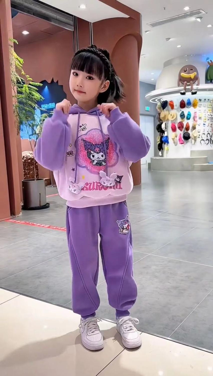 소녀 스웨터 봄과 가을 2024 새로운 가을 옷 소녀 봄과 가을 어린이 스팽글 가변 패턴 쿨로 미 세트스토어 가기