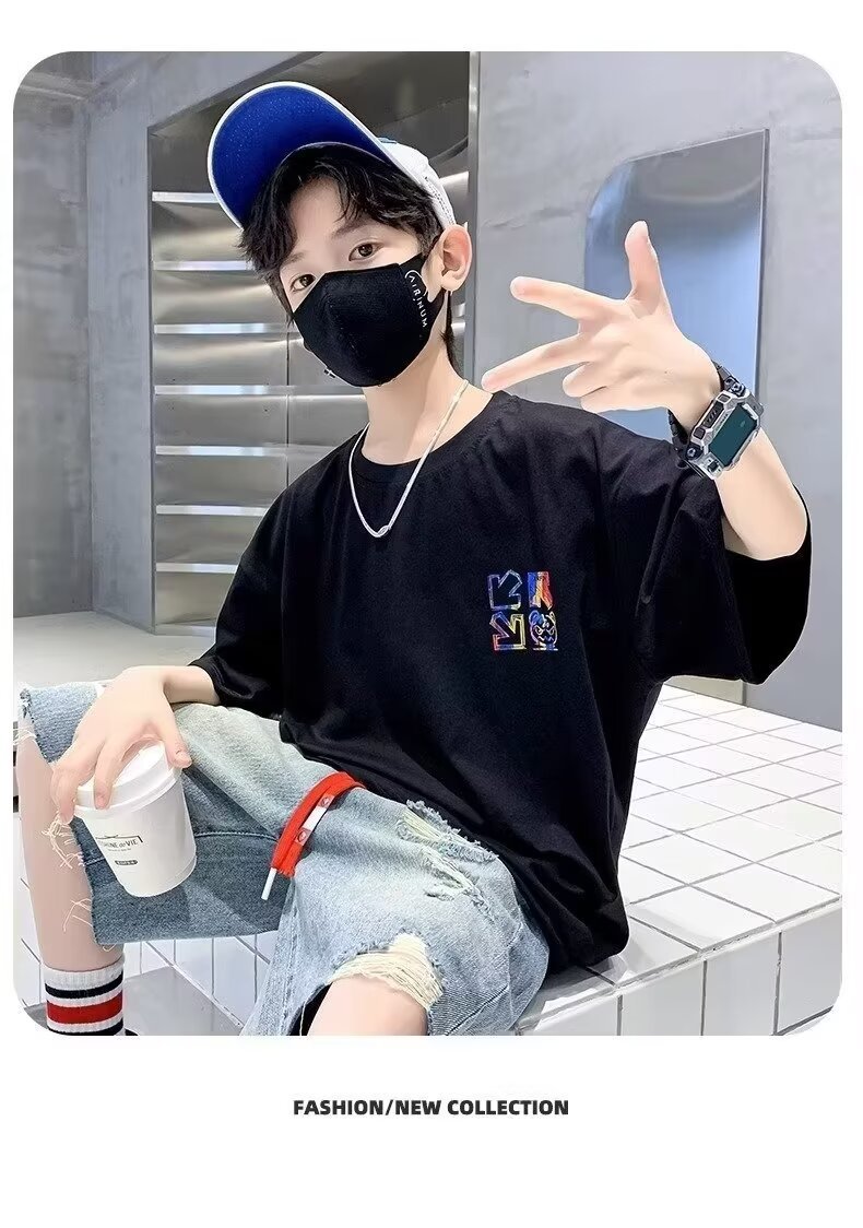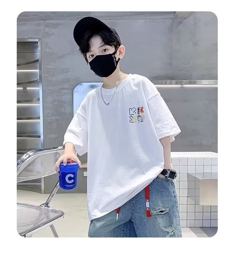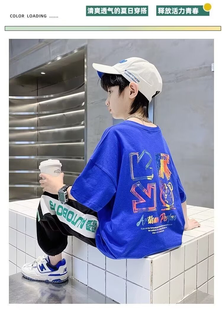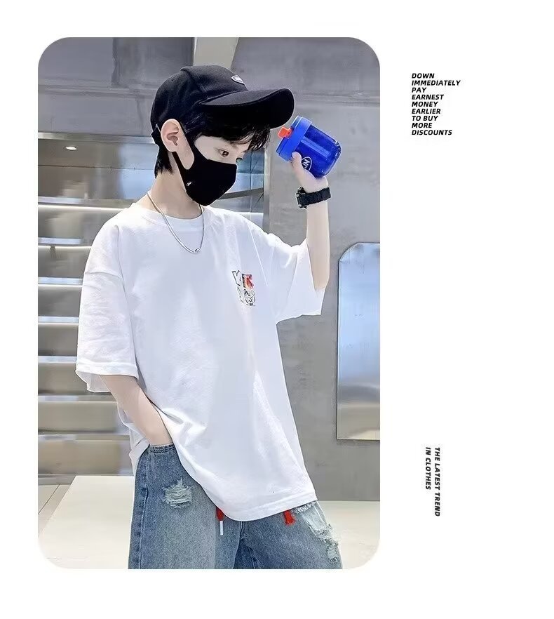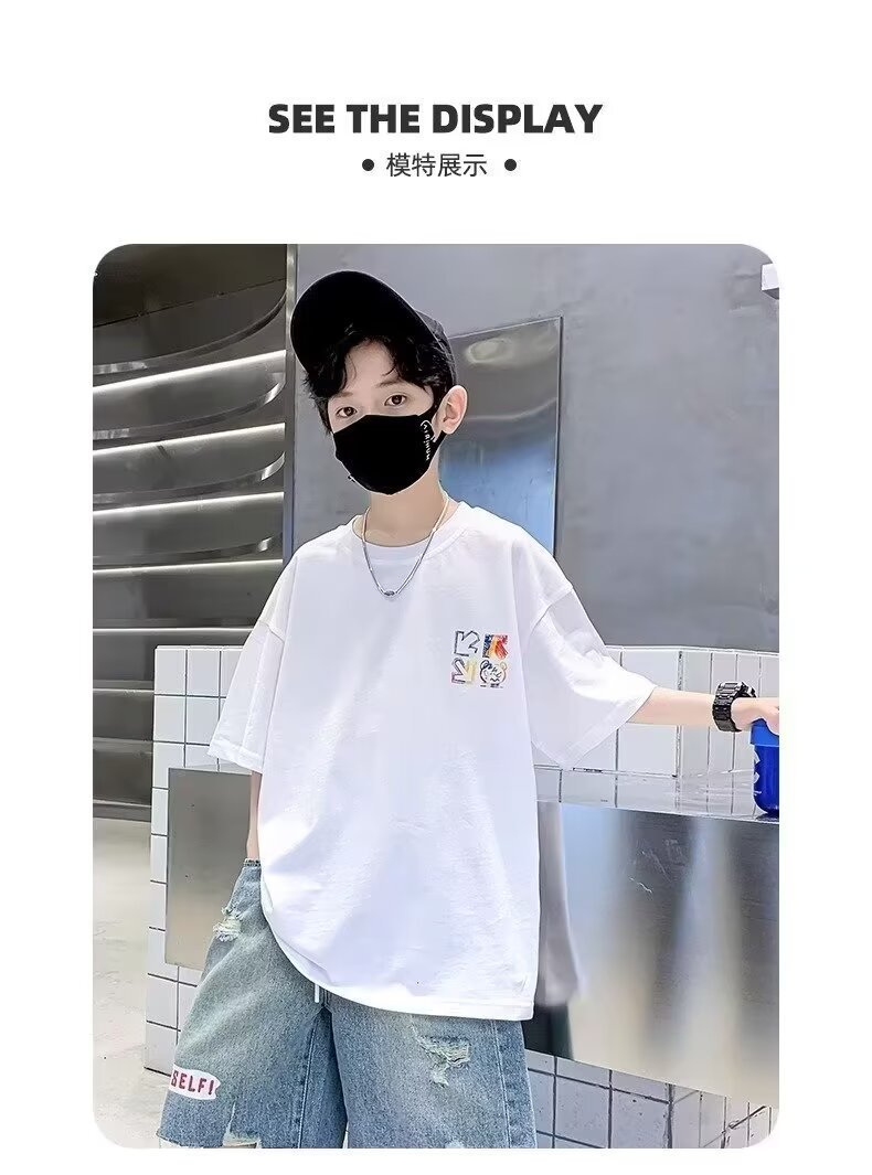 여름 새로운 반팔 티셔츠 어린이 패션 프린트 느슨한 반소매 티셔츠 바닥 셔츠 탑 2024 새로운스토어 가기