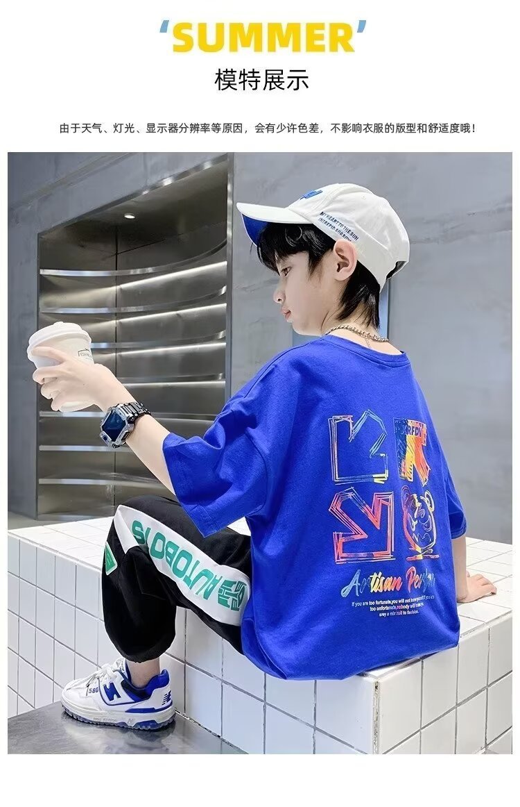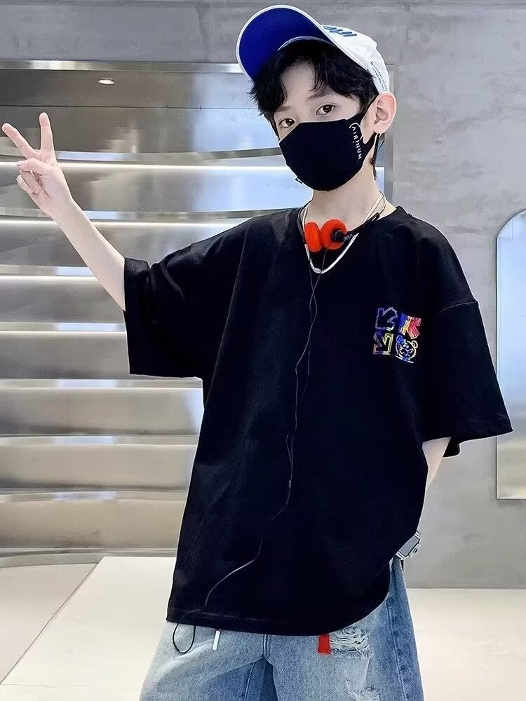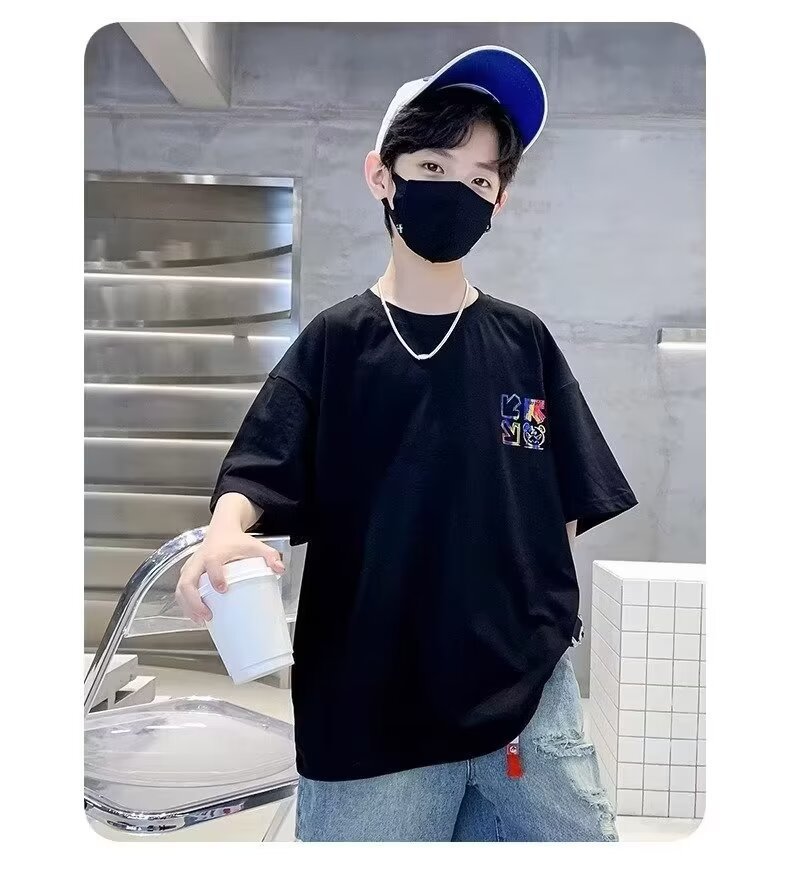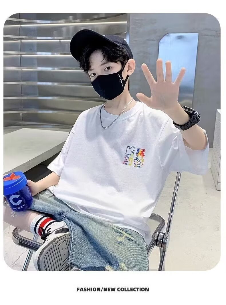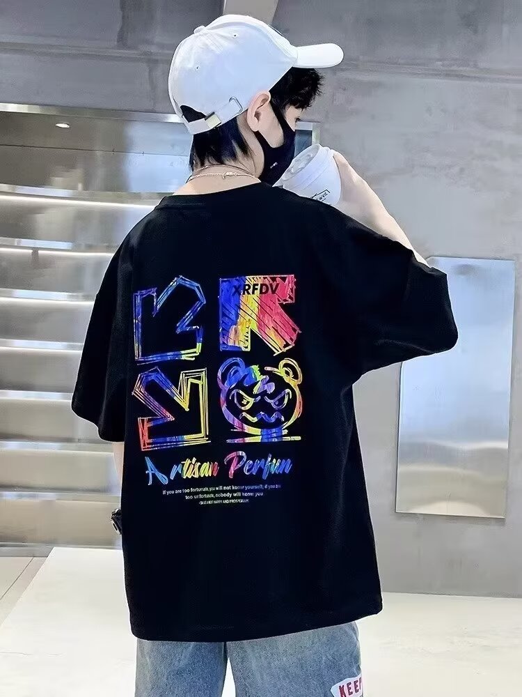 여름 새로운 반팔 티셔츠 어린이 패션 프린트 느슨한 반소매 티셔츠 바닥 셔츠 탑 2024 새로운스토어 가기