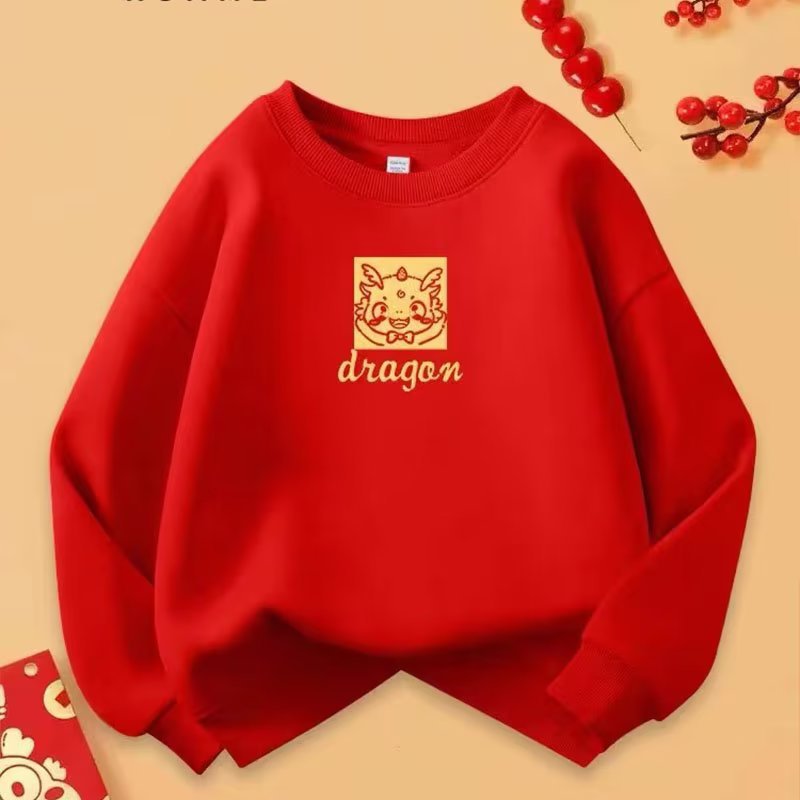 전국 스타일 스웨터 2024 소년 소녀 아동복 드래곤 년 새해 복 올 매치 어린이 셔츠 봄과 가을 라운드 넥 탑스토어 가기