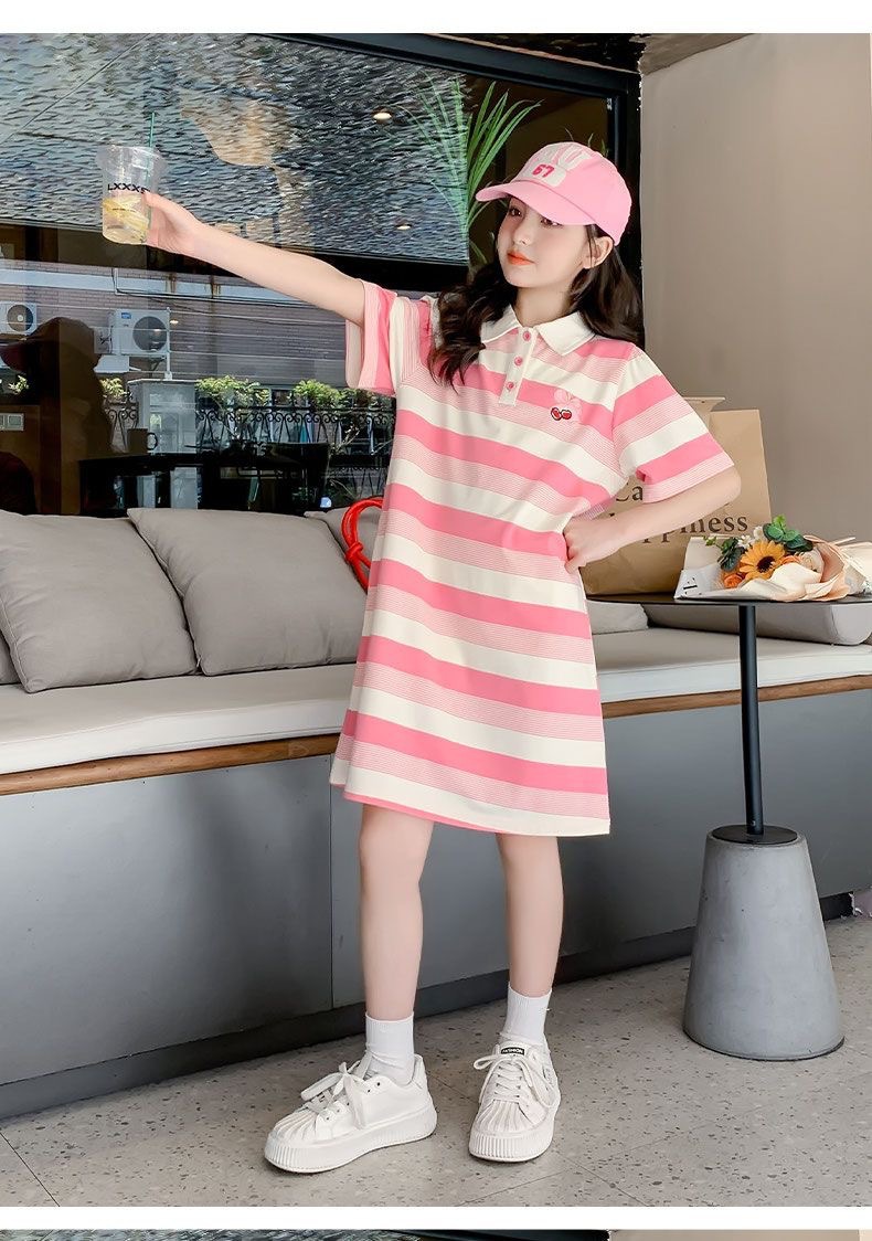 2024 소녀 여름 원피스 원피스 2024 새로운 서양식 어린이 긴 티셔츠 원피스 큰 어린이 여름 원피스