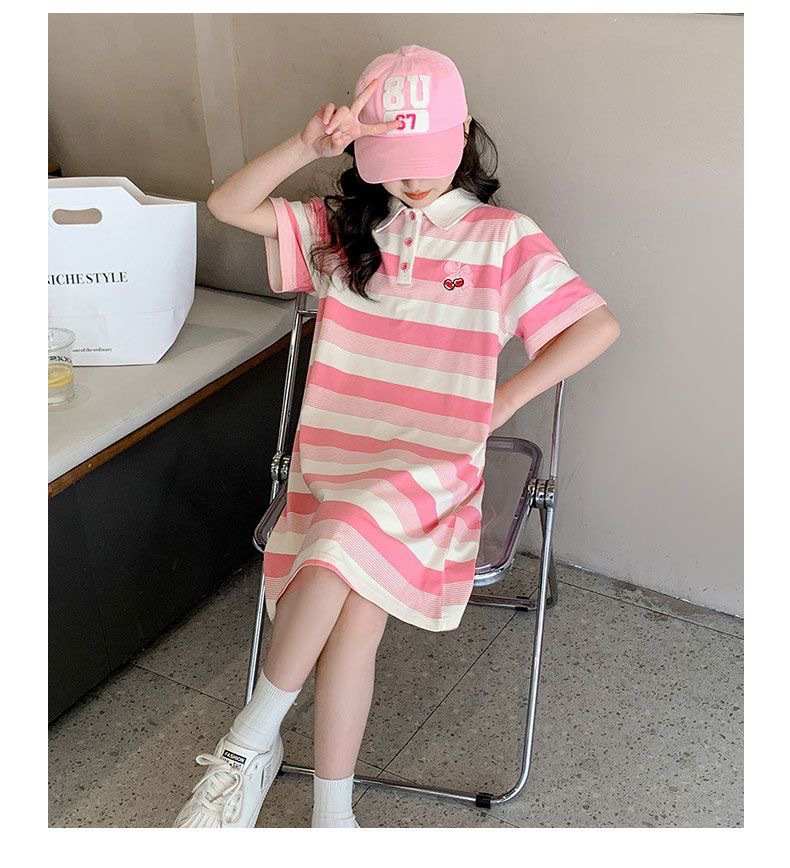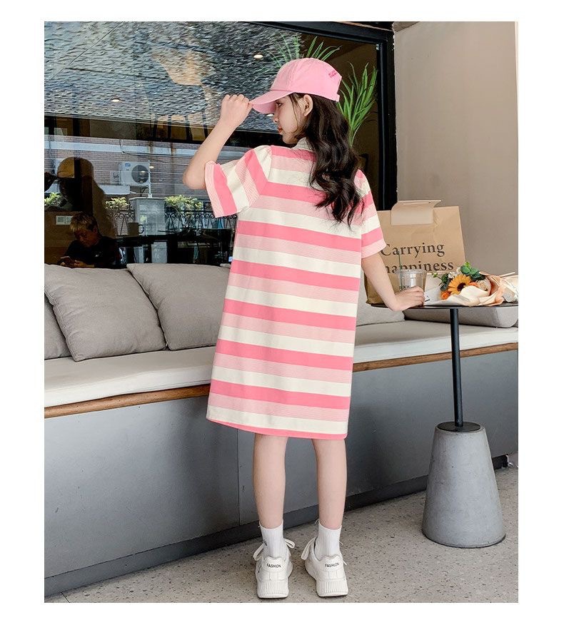 2024 소녀 여름 원피스 원피스 2024 새로운 서양식 어린이 긴 티셔츠 원피스 큰 어린이 여름 원피스스토어 가기