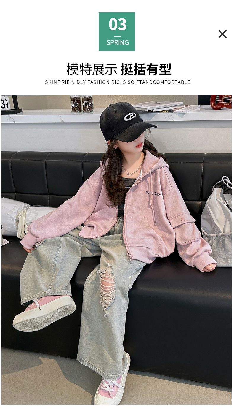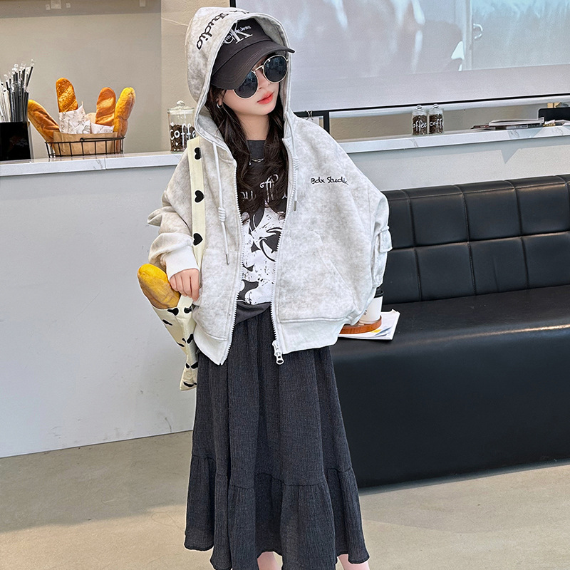 소녀 코트 봄과 가을 2024 새로운 여성의 큰 어린이 캐주얼 스팽글 봄 유행 서양식 어린이 후드 탑스토어 가기