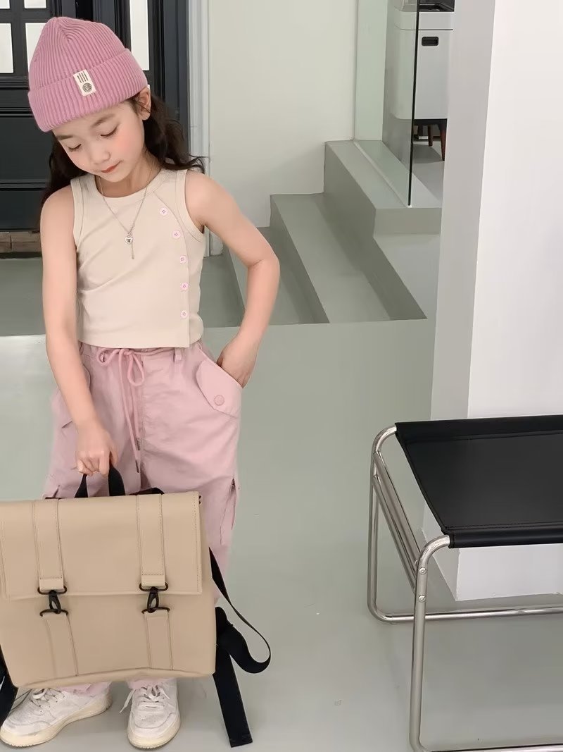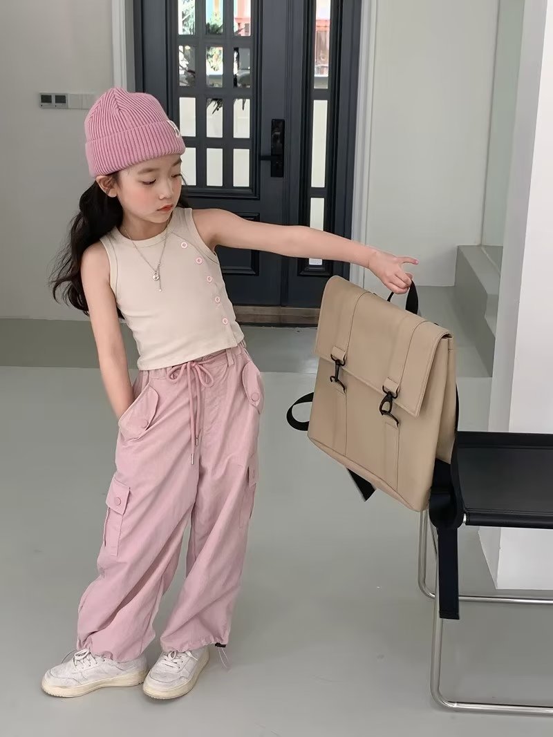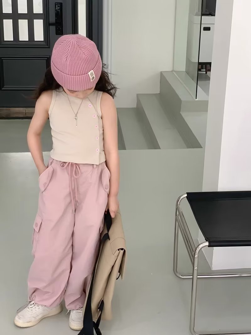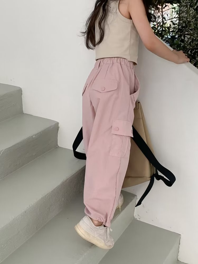 소녀 아메리칸 스타일 drawstring 바지 봄/여름 중형 및 대형 어린이 한국식 핑크 빠른 건조 캐주얼 바지 원피스 배달스토어 가기