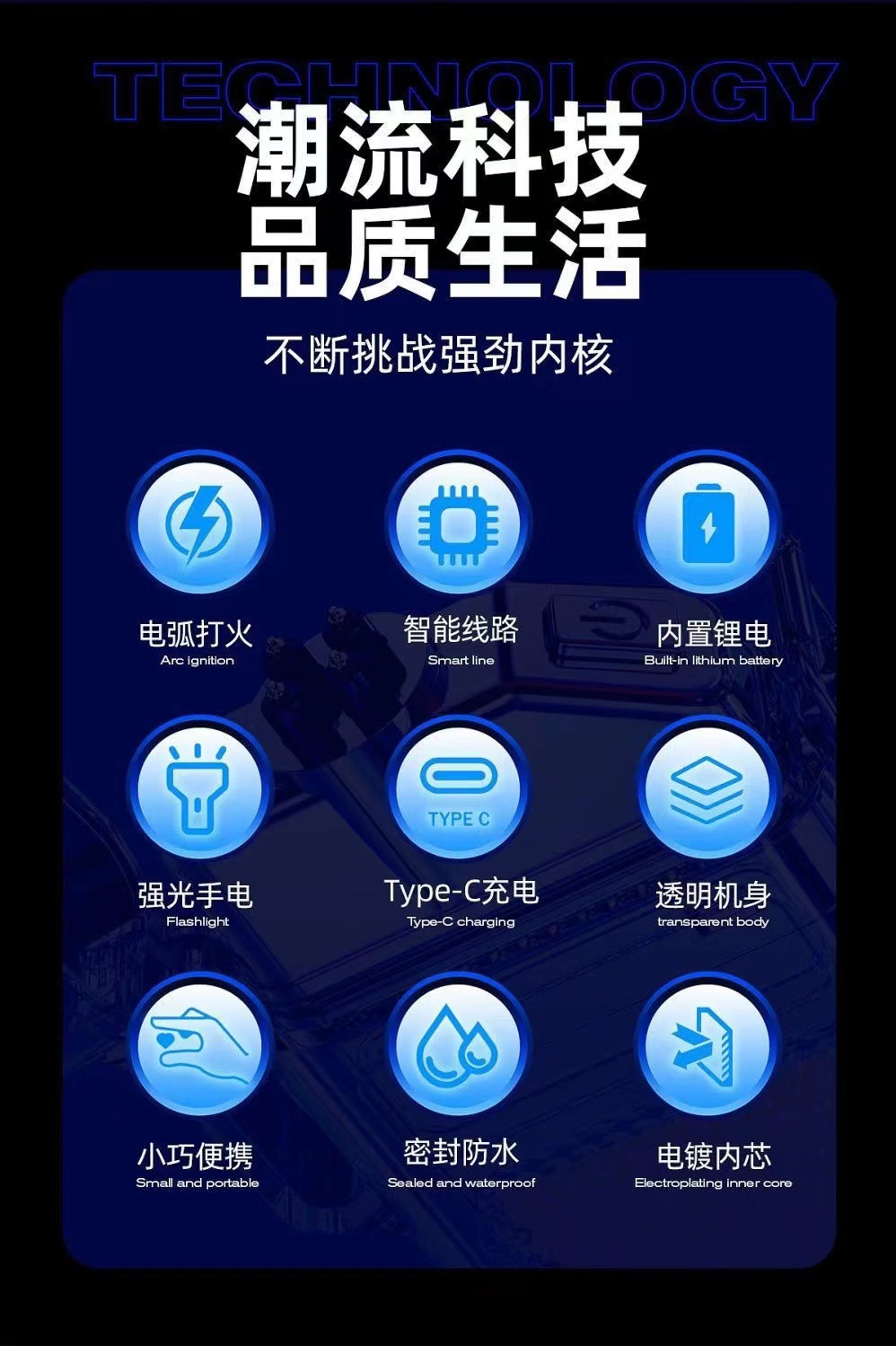 • 플래그십 9세대 + 소형 휴대용 손전등 + 아크 라이터