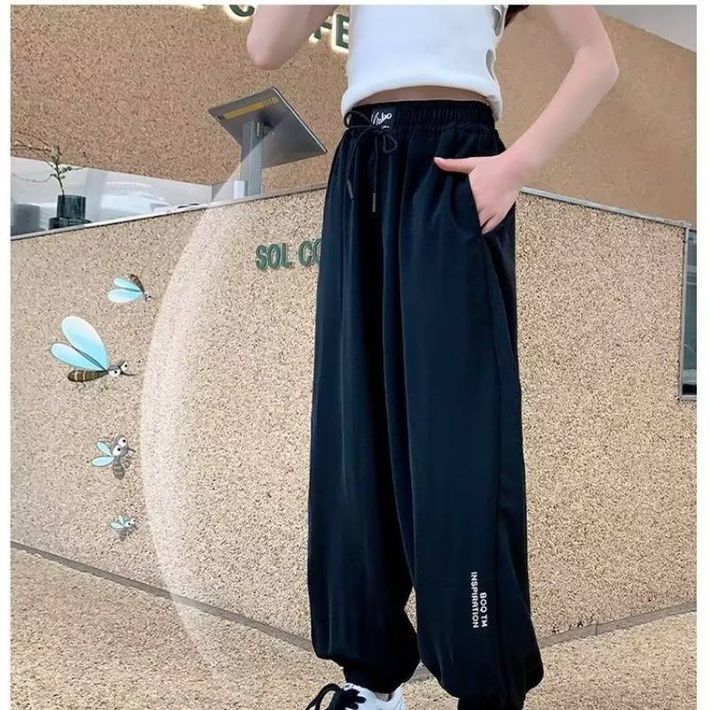 소녀의 모기 방지 바지 여름 얇은 2024 새 여름 느슨한 어린이 스포츠 바지 중대형 어린이 바지 도매