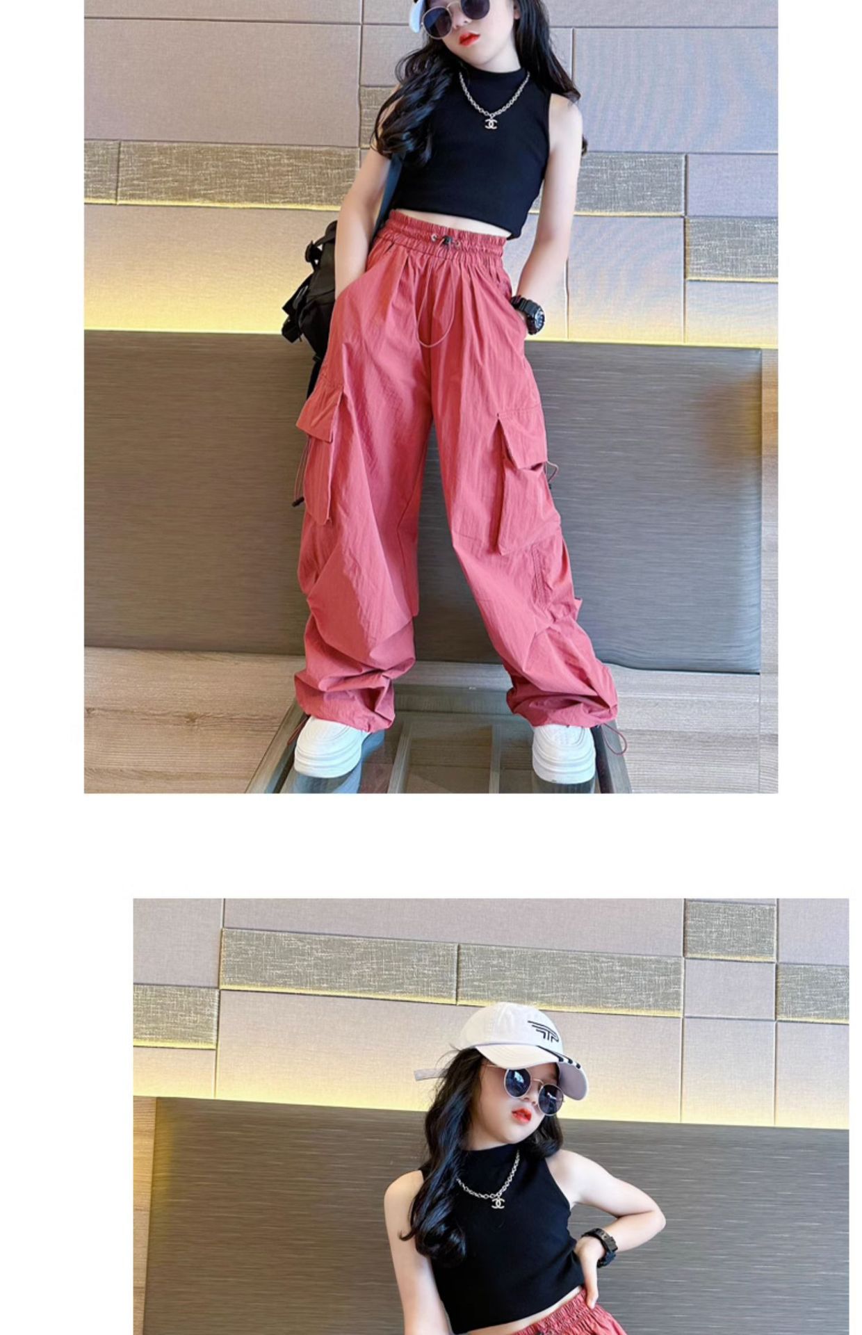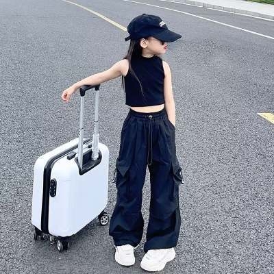 소녀들의 여름 바지 2024 봄과 여름 얇은 바지 중대형 아이들의 느슨한 튀긴 거리 와이드 레그 캐주얼 바지스토어 가기