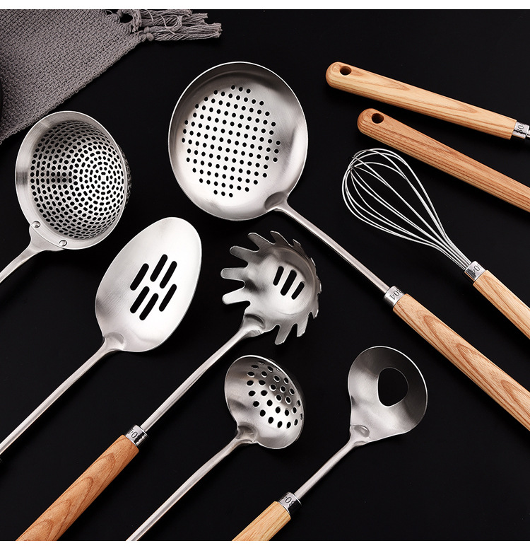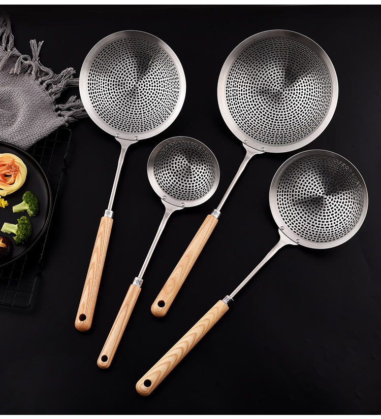 스테인레스 스틸 나무 손잡이 주방 수프 껍질 주방 수프 숟가락 요리 레스토랑 냄비 밥 숟가락 달걀 비터 필러 젓가락