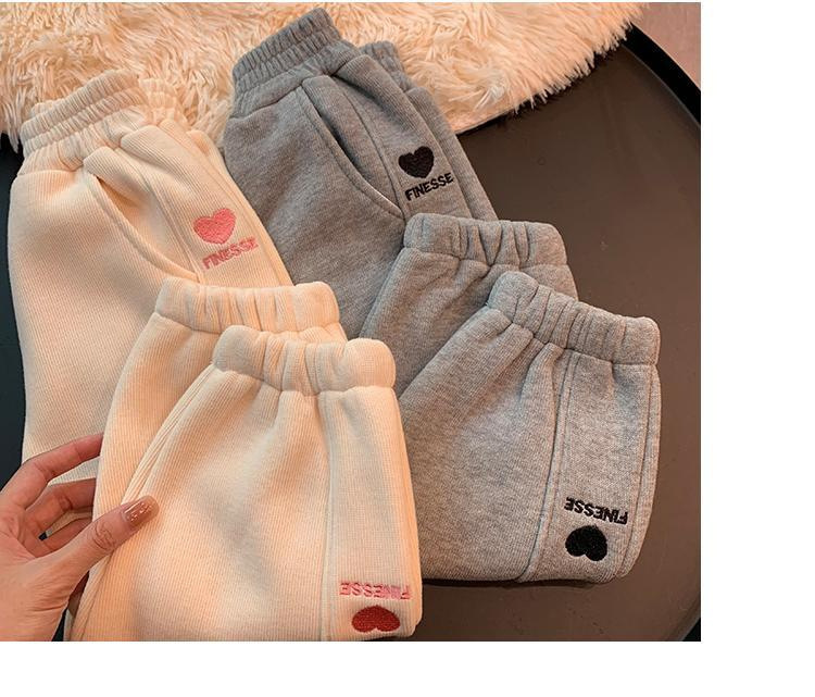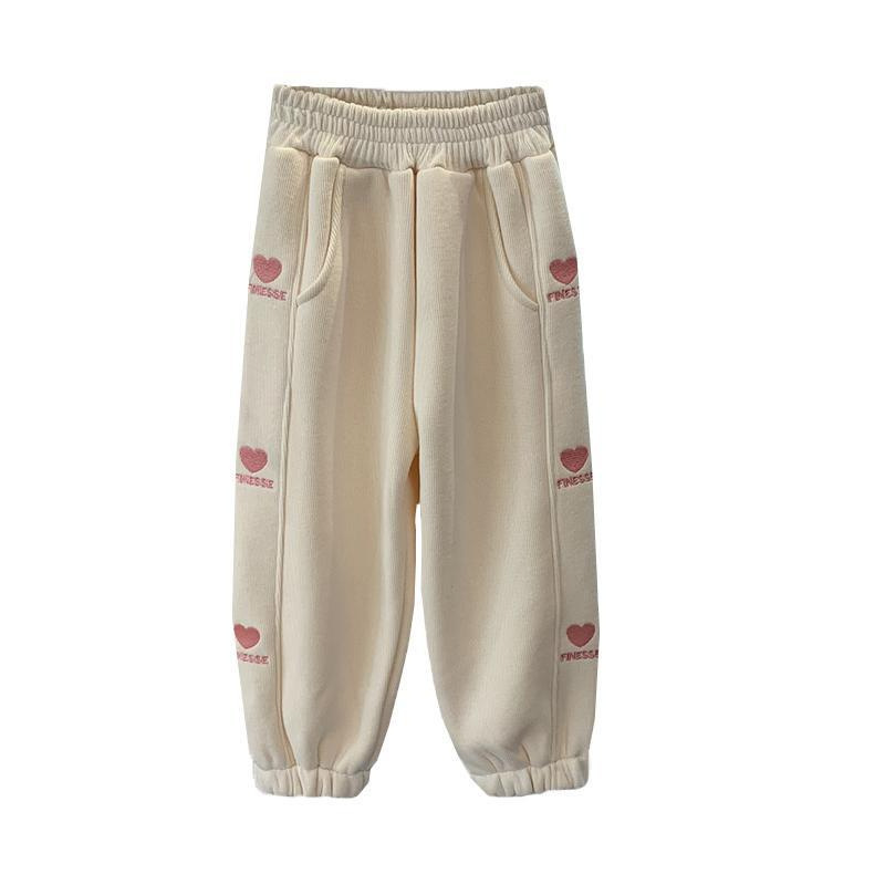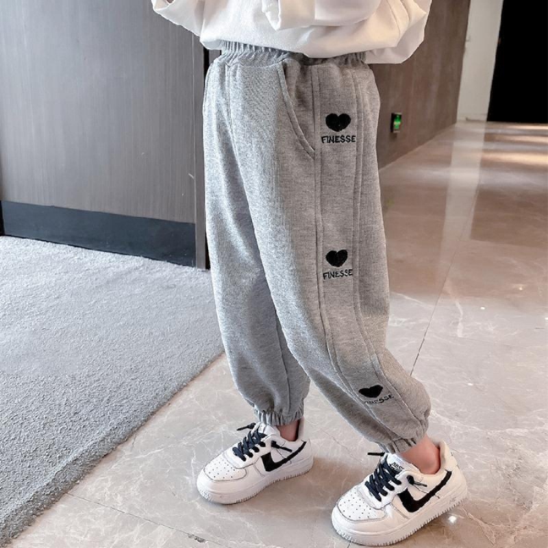 소녀 스포츠 바지 봄과 가을 2024 새로운 서양식 캐주얼 스웨트 팬츠 기모 어린이 중형 및 대형 어린이 느슨한 바지 도매스토어 가기