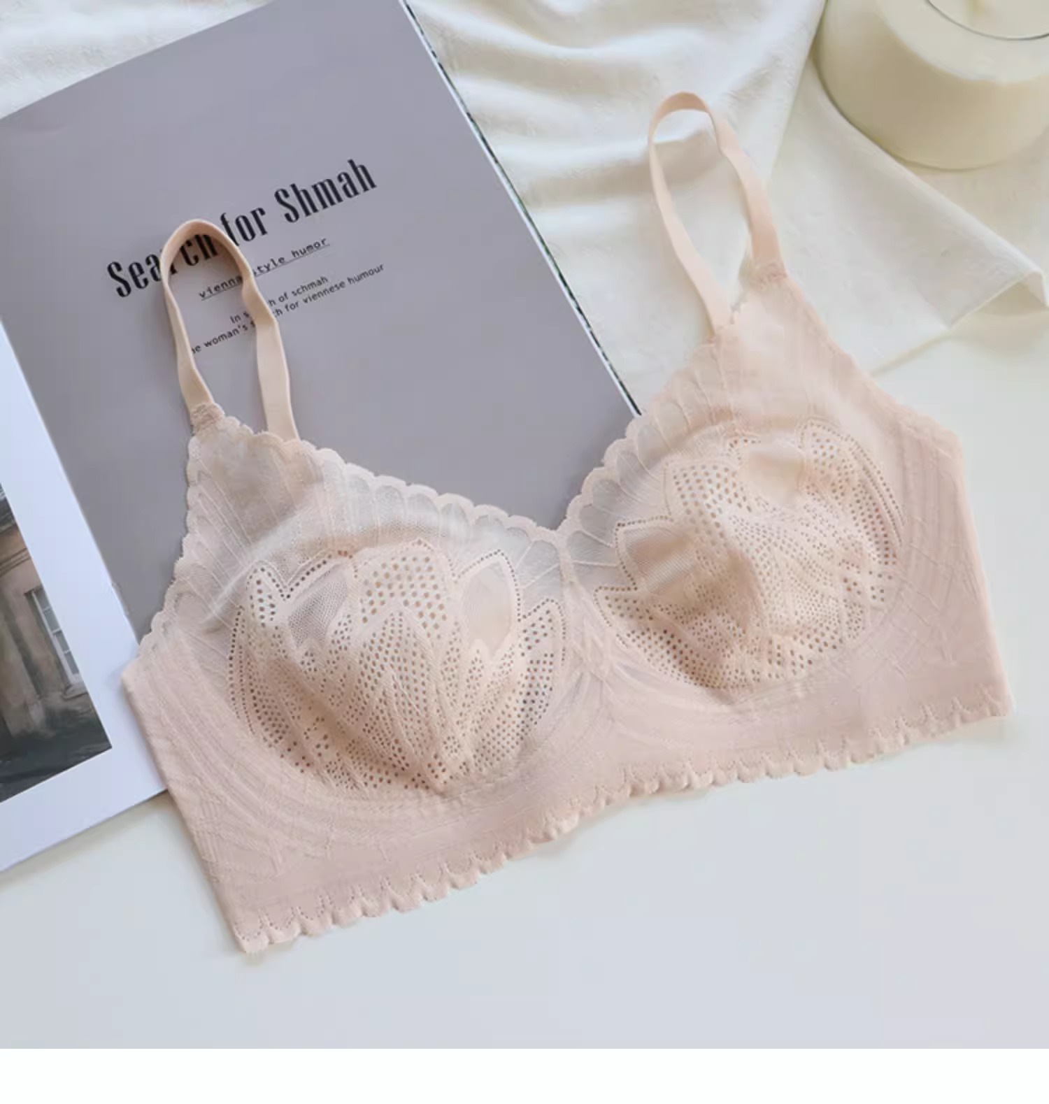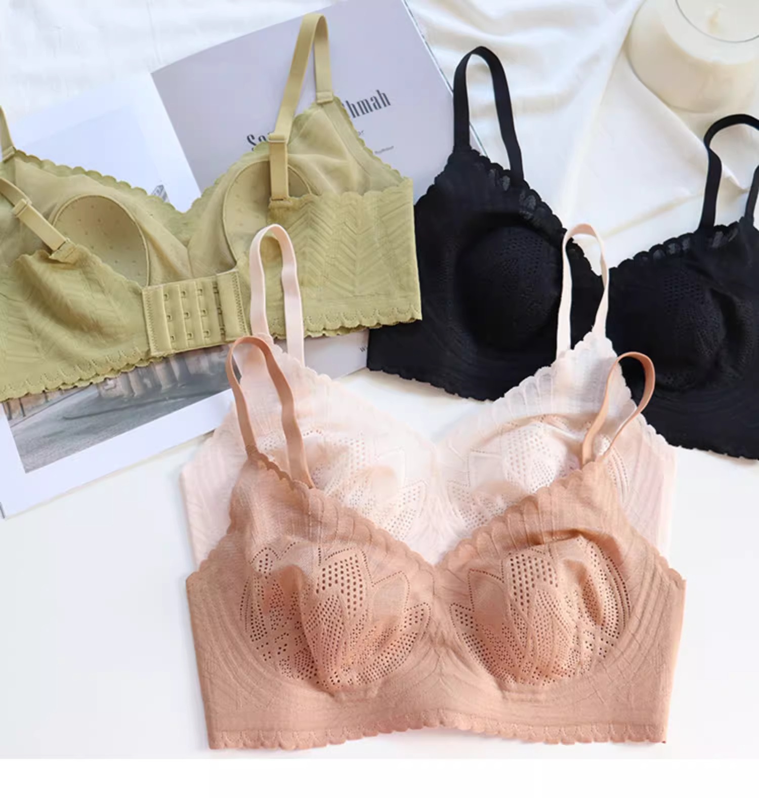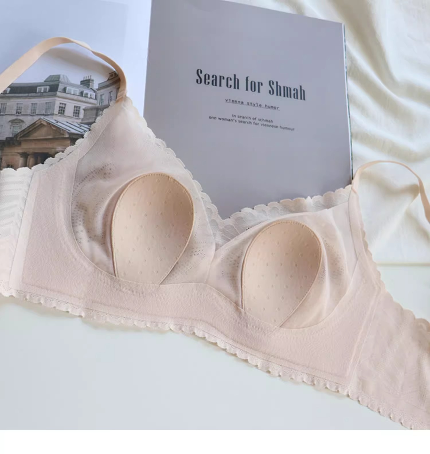 여름 경량 원활한 통기성 속옷 큰 가슴 작은 편안한 푸시 업 유방 컬렉션 스틸 링 레이스 라텍스 브라