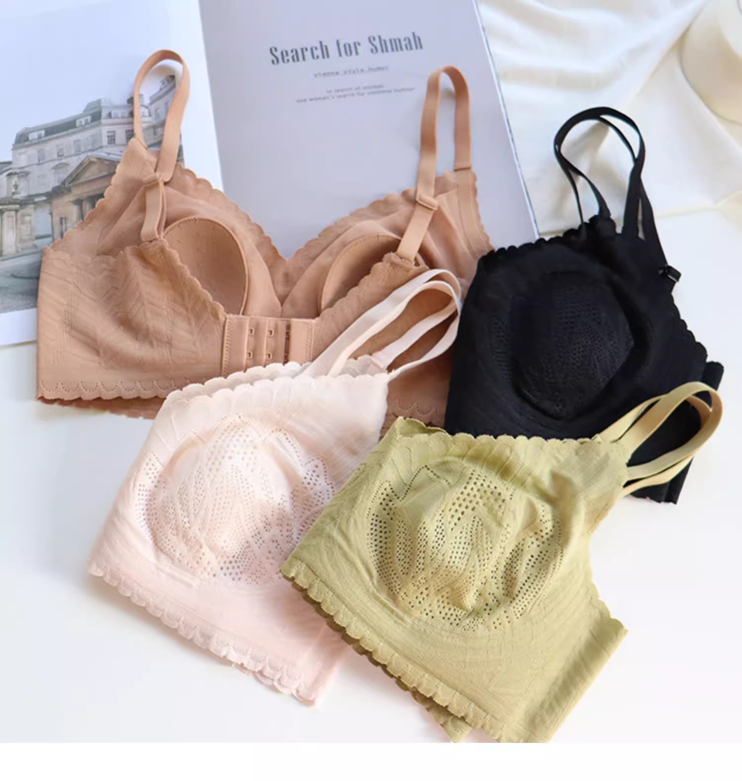 여름 경량 원활한 통기성 속옷 큰 가슴 작은 편안한 푸시 업 유방 컬렉션 스틸 링 레이스 라텍스 브라스토어 가기