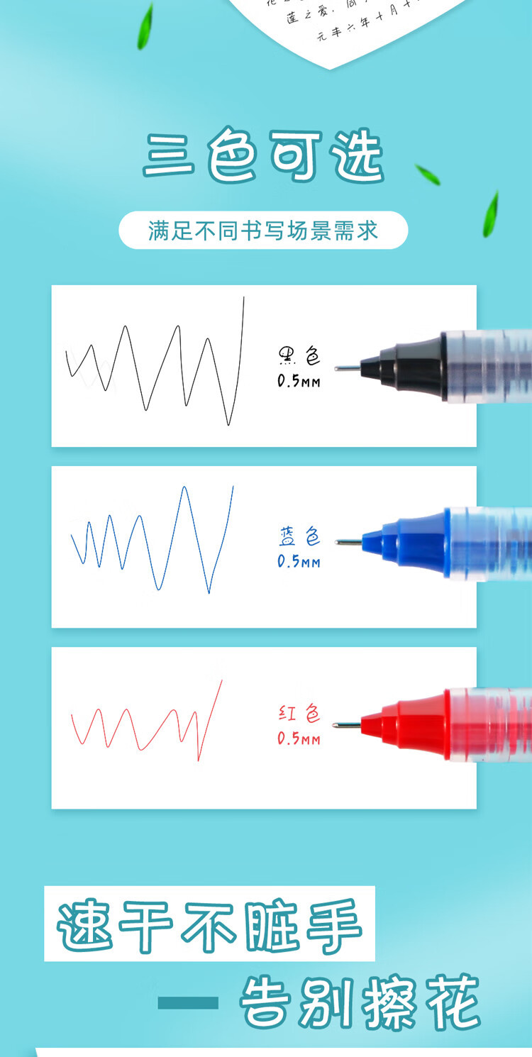 청광 간단한 우아한 시그니처 펜 교체 가능한 리필 0.5m 풀 바늘 튜브 블랙 빠른 건조 스트레이트 액체 대용량 볼펜