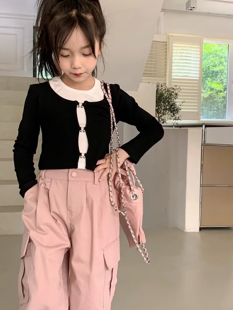 소녀 바지 유행 올 매칭 2024 봄 새로운 어린이 중형 및 대형 어린이 바지 캐주얼 서양식 스포츠 바지
