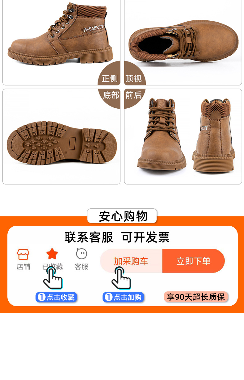하이탑 사계절용 캐주얼 안전화 방수 미끄럼 방지 장시간 서서 일해도 피곤하지 않은 작업화 충격 방지 및 천공 방지 안전화스토어 가기