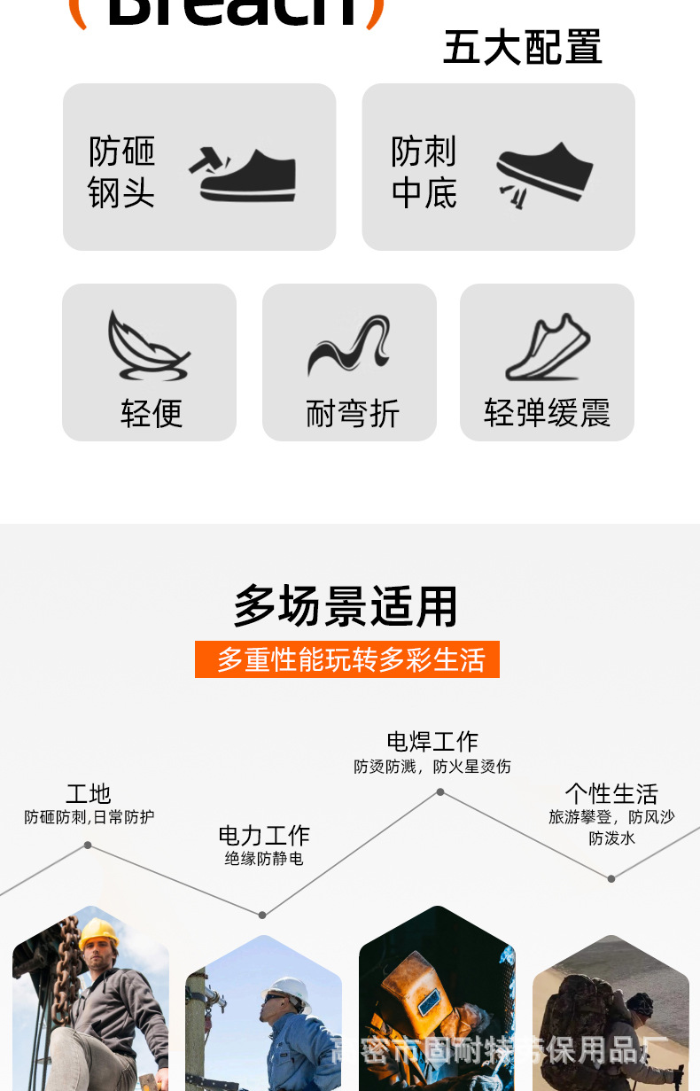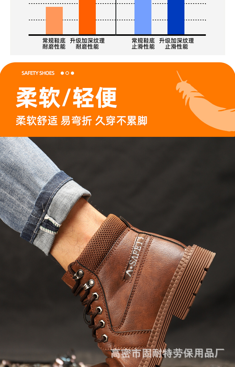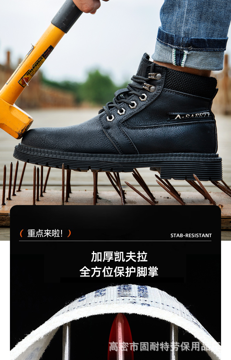 하이탑 사계절용 캐주얼 안전화 방수 미끄럼 방지 장시간 서서 일해도 피곤하지 않은 작업화 충격 방지 및 천공 방지 안전화