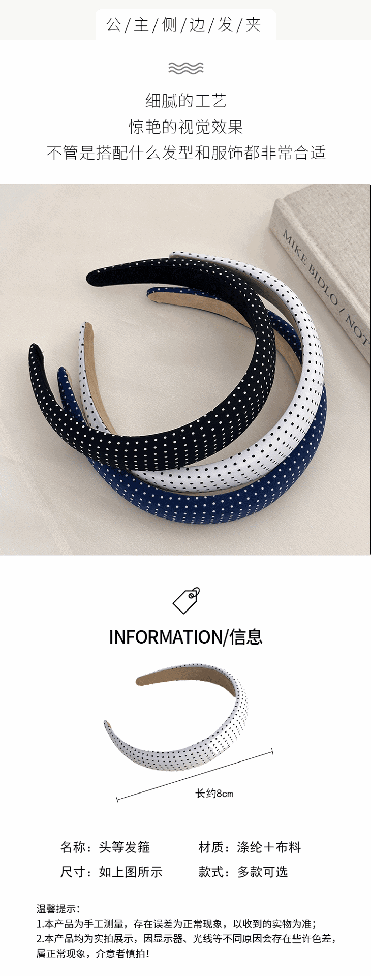 한국식 새로운 고급 컬러 스팟 헤드 밴드 여성 달콤한 간단한 올 매치 헤드 밴드 무 시즌 압력 헤드 페이스 워시 헤드 밴드