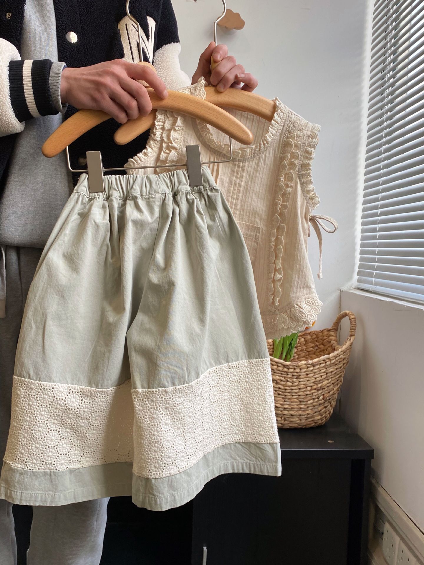 소녀 모리 자수 레이스 조끼 느슨한 바지 투피스 세트 2024 여름 얇은 민소매 어린이 세트스토어 가기