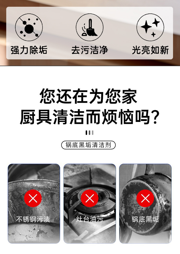 [냄비 바닥을위한 블랙 스케일 제거제] 청소 냄비 바닥 검은 콜라 얼룩 강한 스테인레스 스틸 냄비 청소 에이전트 제조 업체가 Behalf에 보냅니다