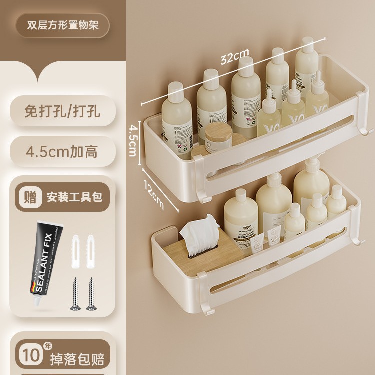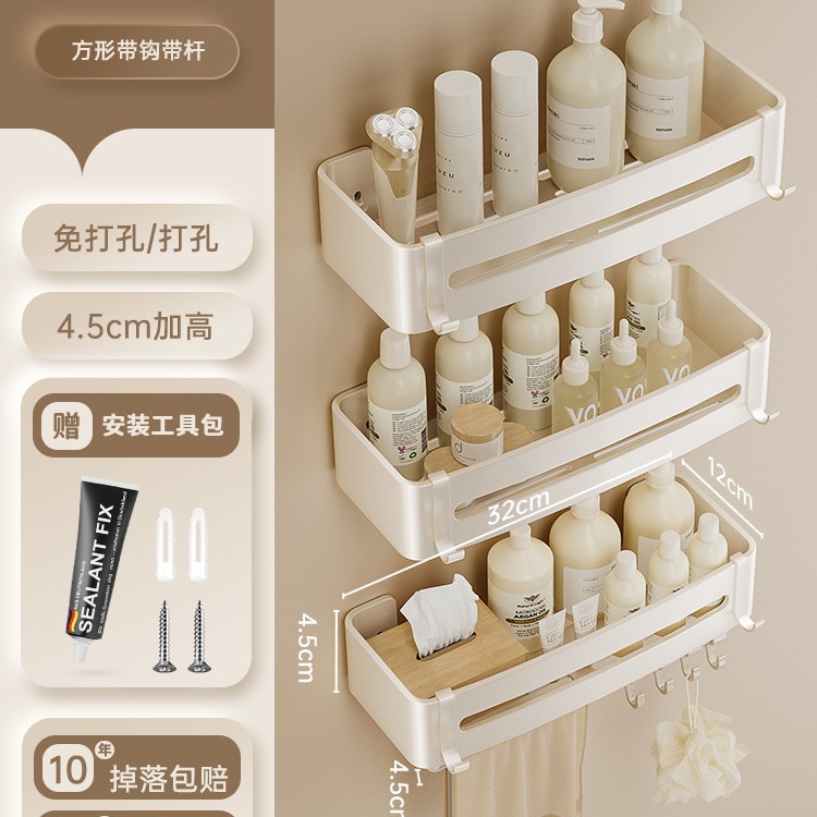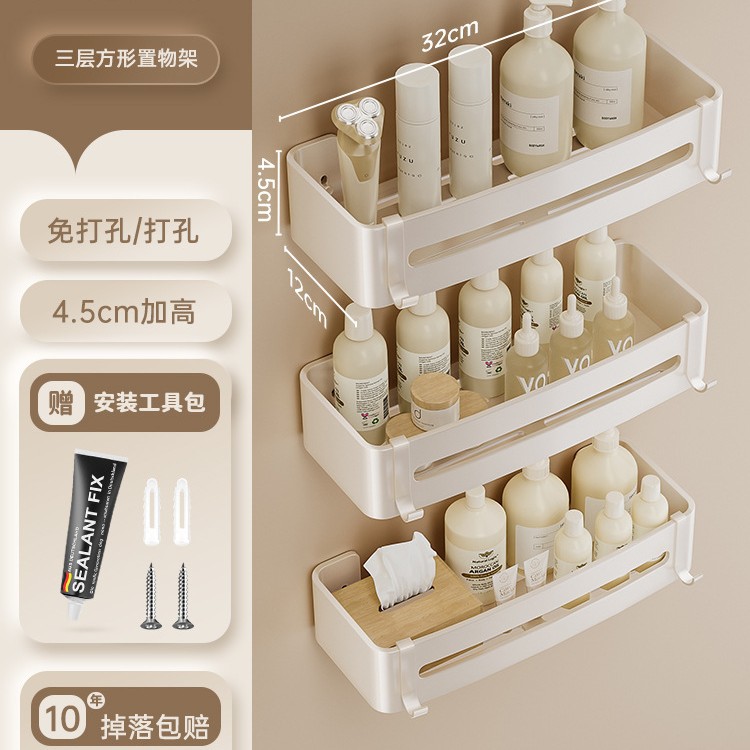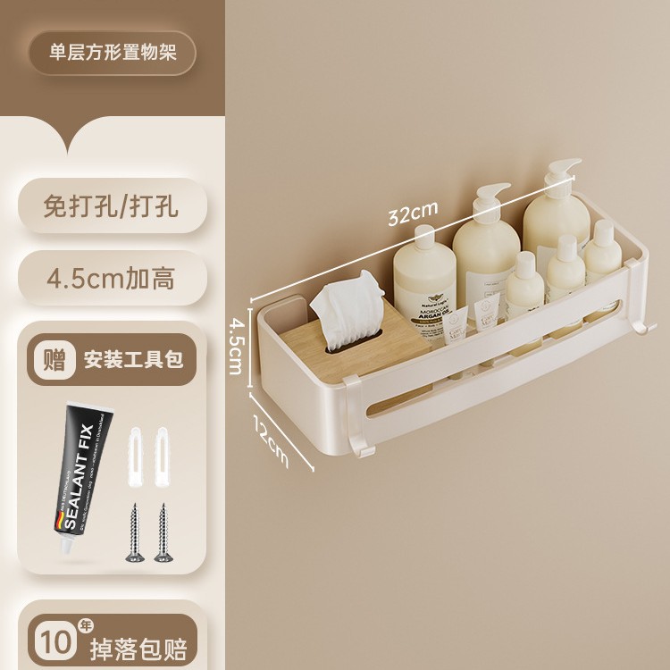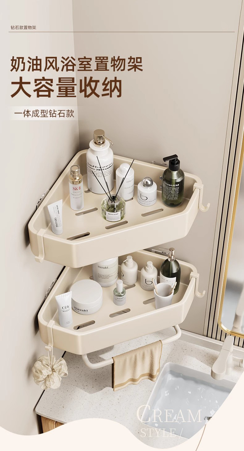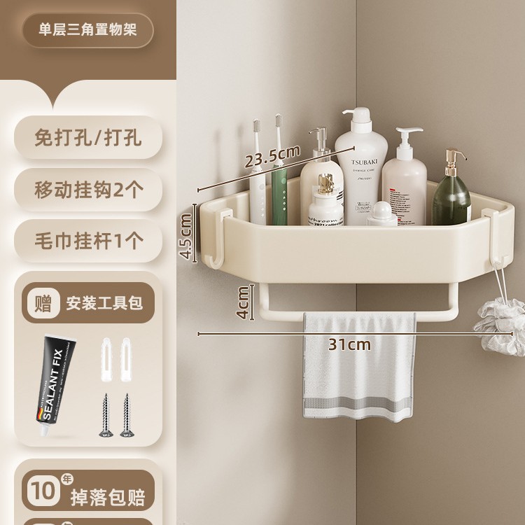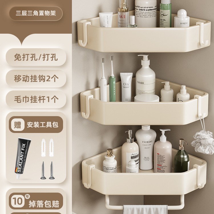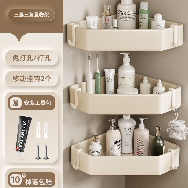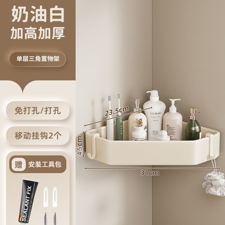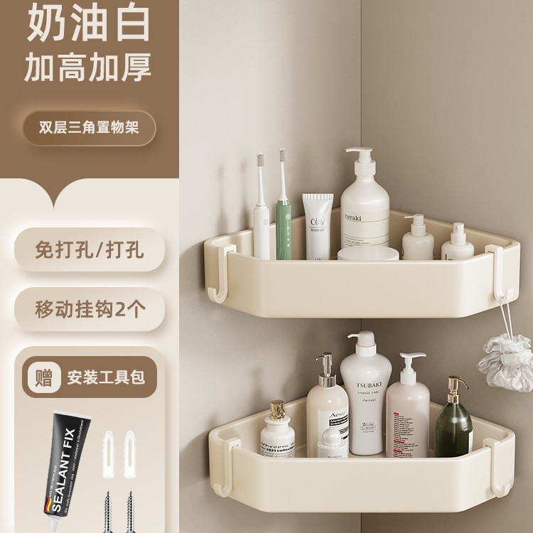 크림 화이트 욕실 보관 랙 화장실 펀치 프리 보관 벽걸이 화장실 삼각형 코너 랙스토어 가기