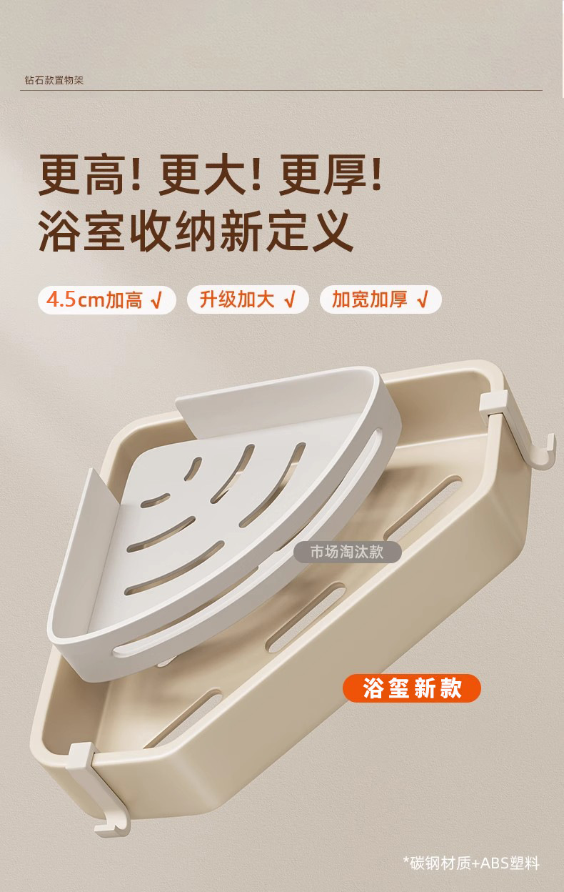 크림 화이트 욕실 보관 랙 화장실 펀치 프리 보관 벽걸이 화장실 삼각형 코너 랙