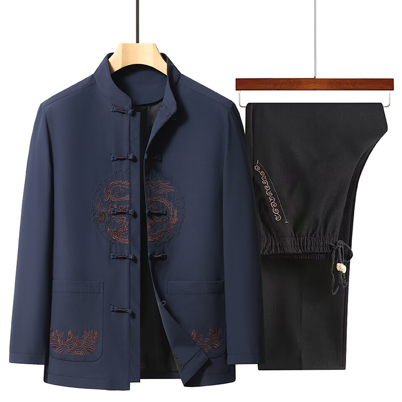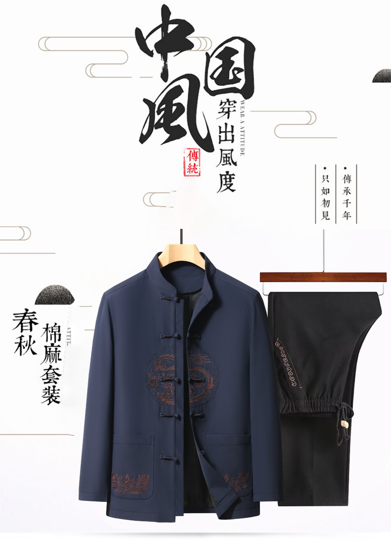 탕 세트 남성의 새로운 중국 스타일 중국 스타일 코트 중년 및 노인 아빠 봄과 가을 의류 60 세 할아버지 봄 전국 패션 재킷스토어 가기