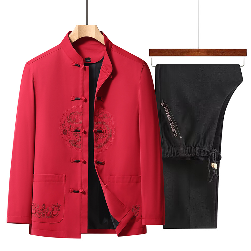 탕 세트 남성의 새로운 중국 스타일 중국 스타일 코트 중년 및 노인 아빠 봄과 가을 의류 60 세 할아버지 봄 전국 패션 재킷