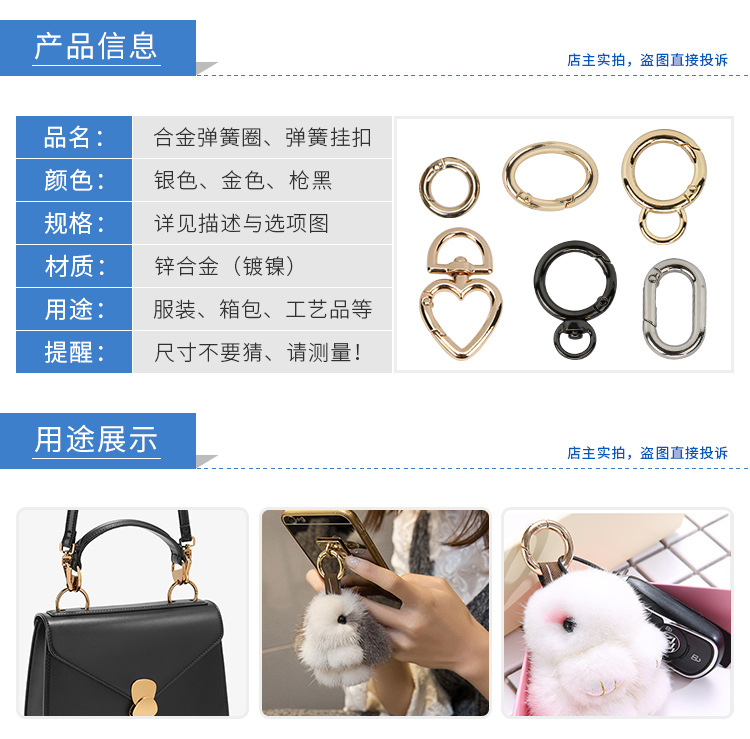 공장 직접 하드웨어 보석 봄 버클 링 펜던트 DIY 펜던트 금속 키 체인 액세서리 합금 라운드 링 버클스토어 가기