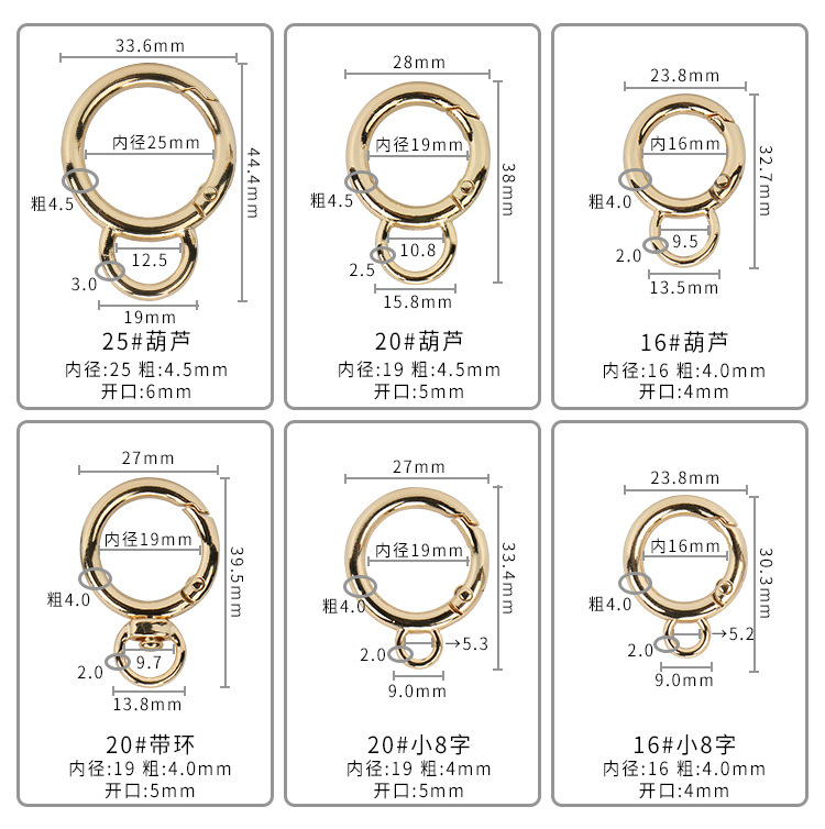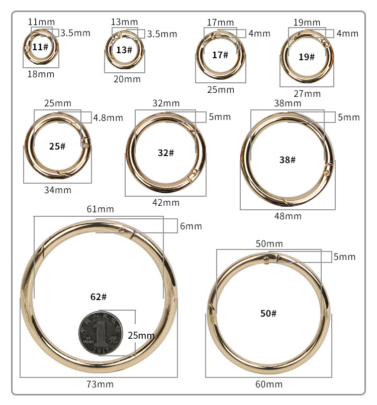 공장 직접 하드웨어 보석 봄 버클 링 펜던트 DIY 펜던트 금속 키 체인 액세서리 합금 라운드 링 버클