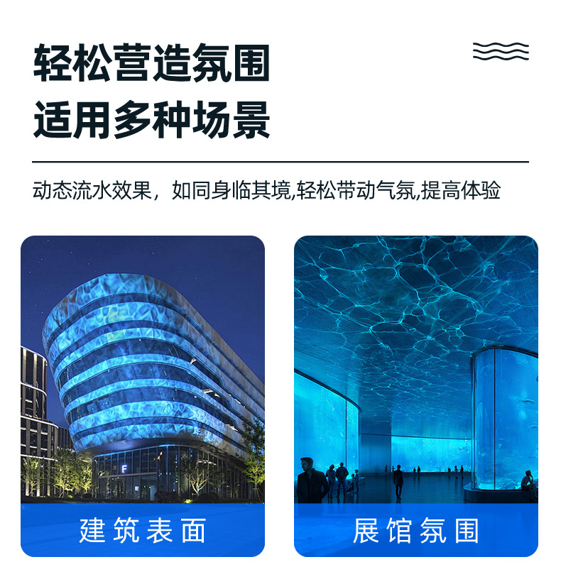 동적 프로젝션 물 패턴 램프 야외 횡단 다리 바닥 조명 분위기 램프 바다 세계 led 물 리플 스포트라이트