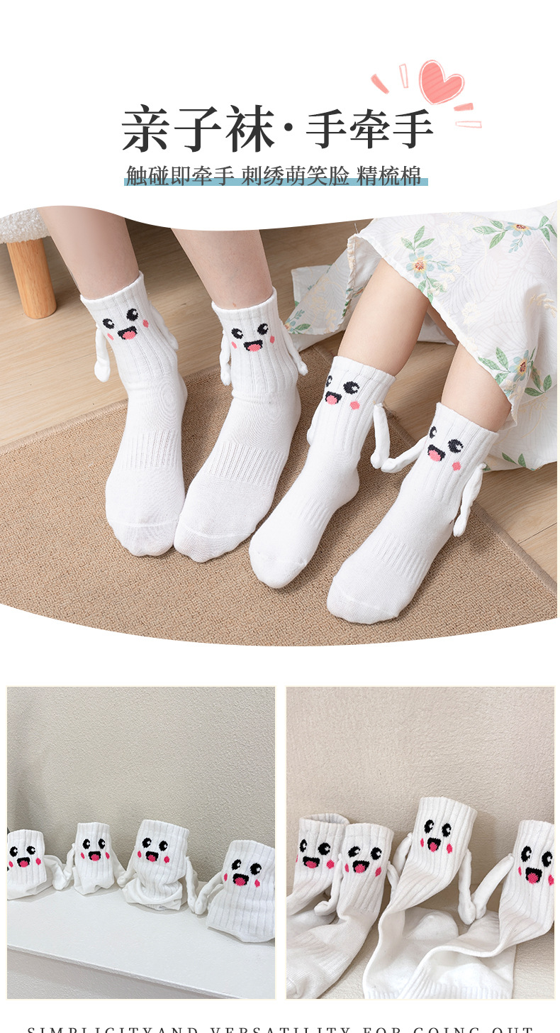 인터넷 유명 인사 스타일 핸들 부모 자식 양말 손 잡고 양말 자기 흡입 남성과 여성 아기 중간 종아리 양말 귀여운 재미있는 웃는 얼굴 패션 만화스토어 가기