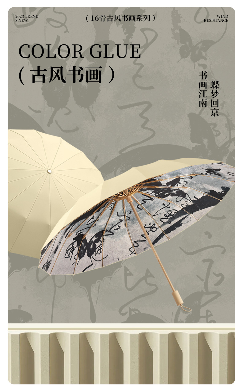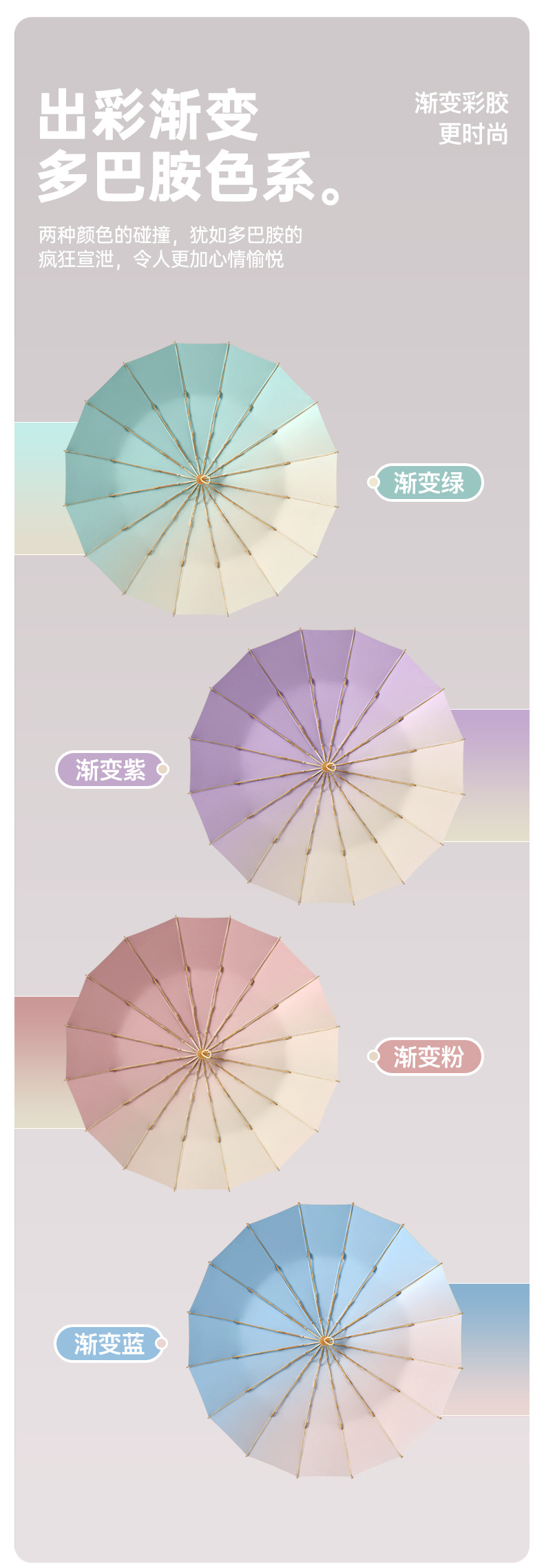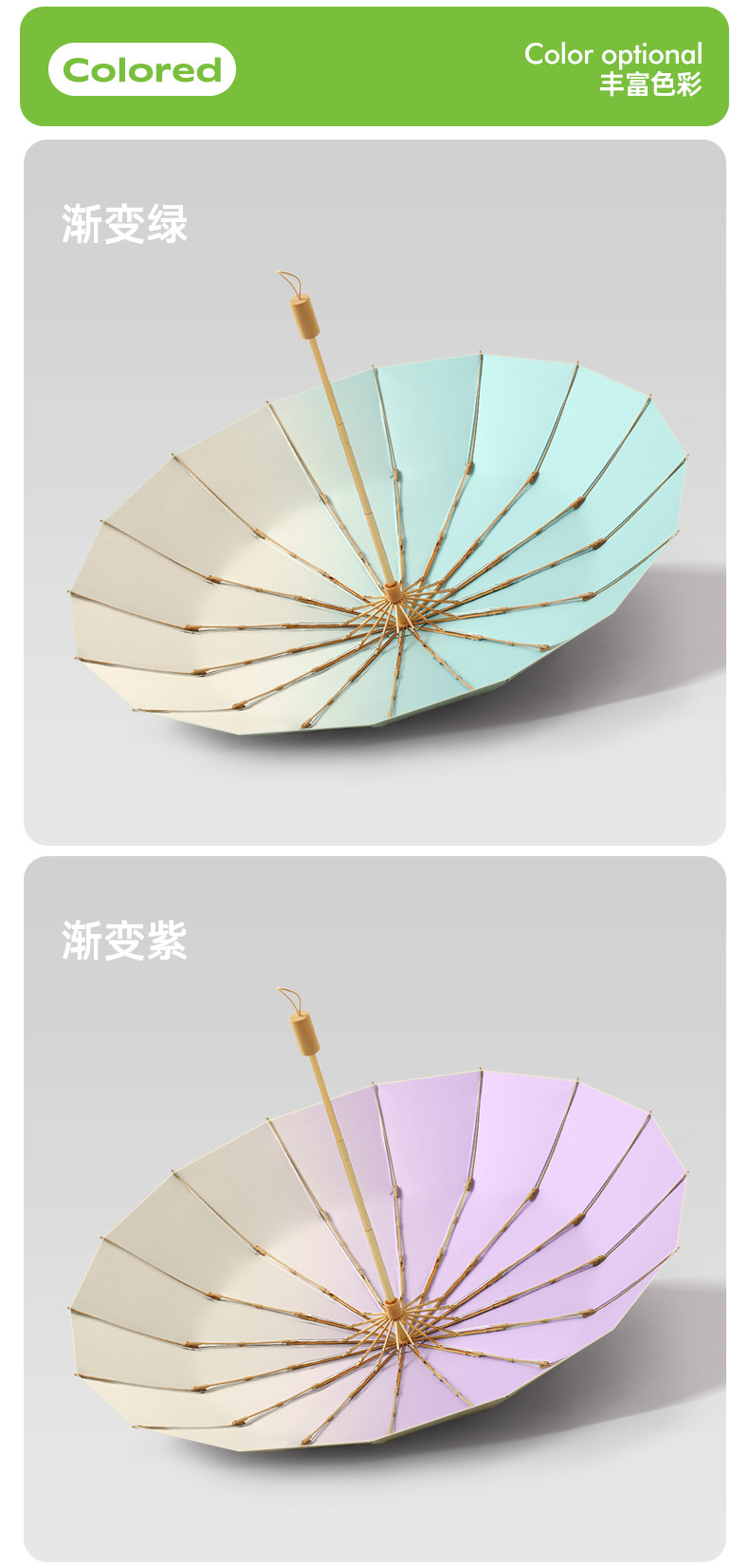 16 뼈 컬러 플라스틱 우산 그라데이션 태양 우산 고대 스타일 우산 맑고 비오는 태양 우산 광고 우산 인쇄 가능한 로고 선물 우산스토어 가기