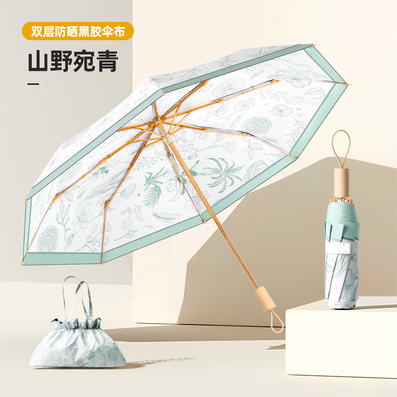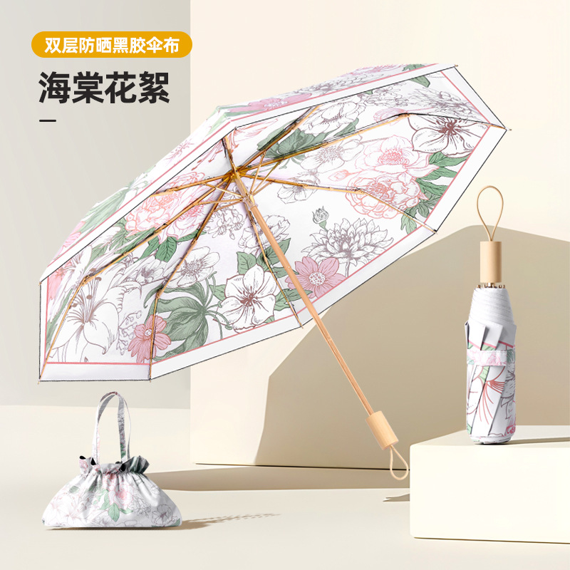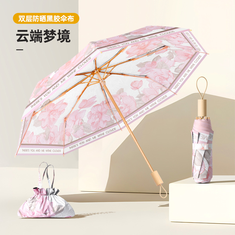 • 더블 레이어 블랙 접착제 우산 8 뼈-베고니아 catkin