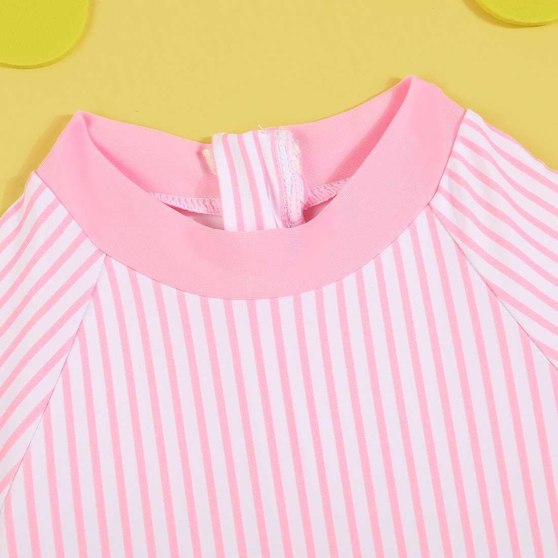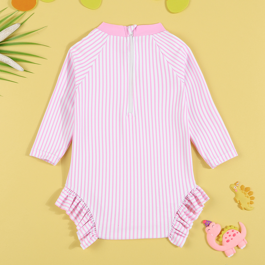 어린이 수영복 새로운 소녀 원피스 국경 공급 긴 소매 태양 보호 주름진 줄무늬 둥근 목 아기 수영복스토어 가기