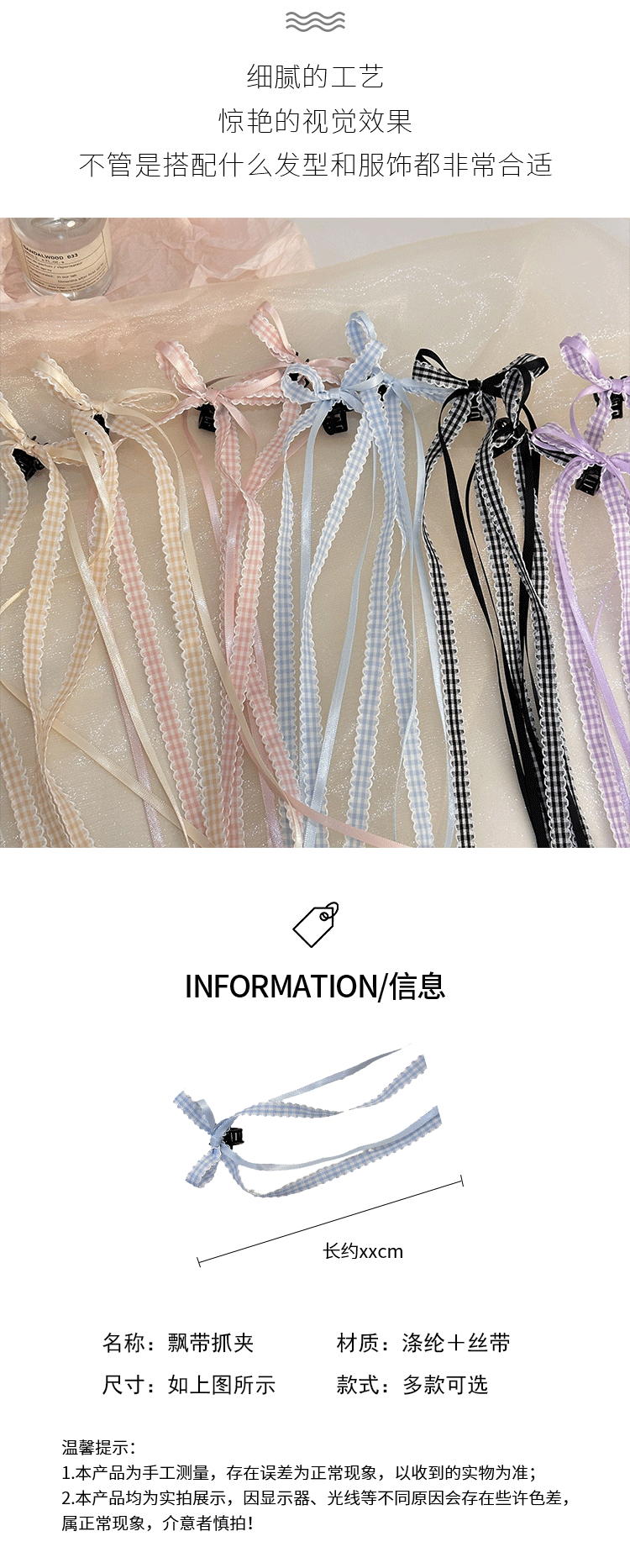 모리 소녀 격자 무늬 긴 리본 활 클립 발레 스타일 꼰 헤어 사이드 클립 더블 포니 테일 헤어핀 헤어 액세서리 머리 장식스토어 가기