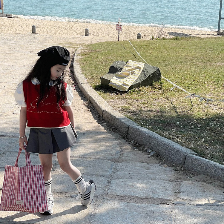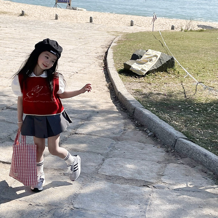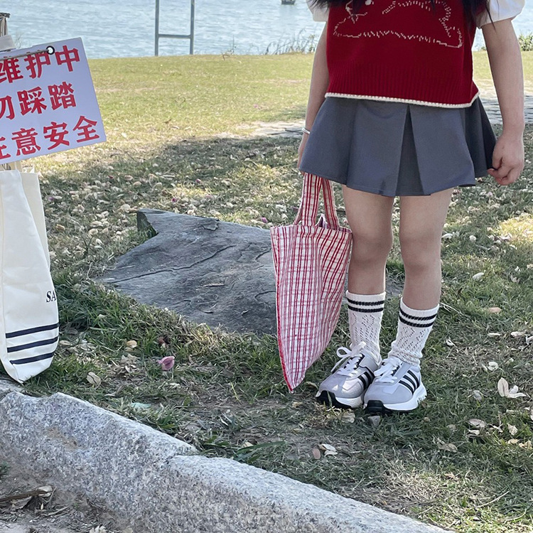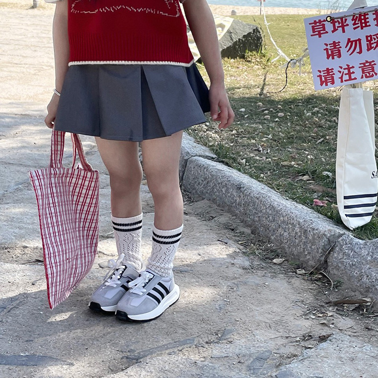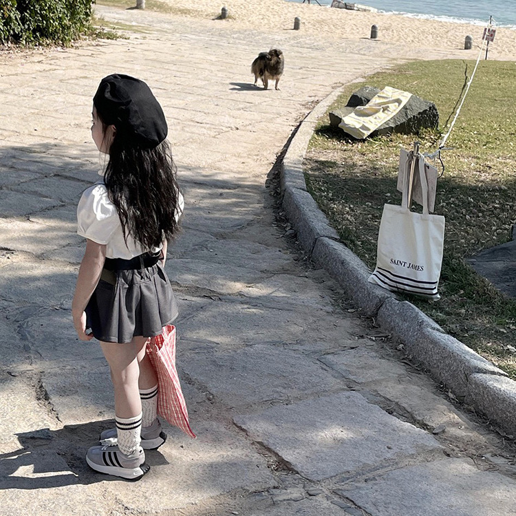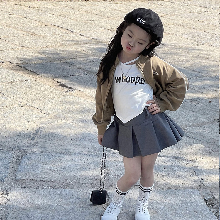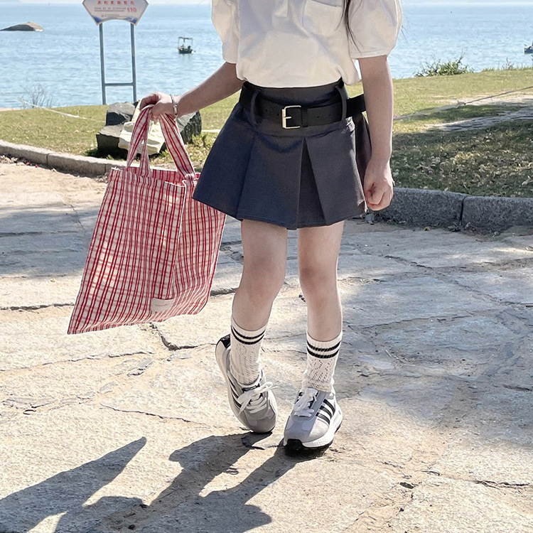 여자 스커트 플리츠 스커트 아기 소녀 2025 봄, 여름 새로운 한국어 버전 솔리드 컬러 탄성 하이 웨이스트 A 라인 우산 스커트스토어 가기