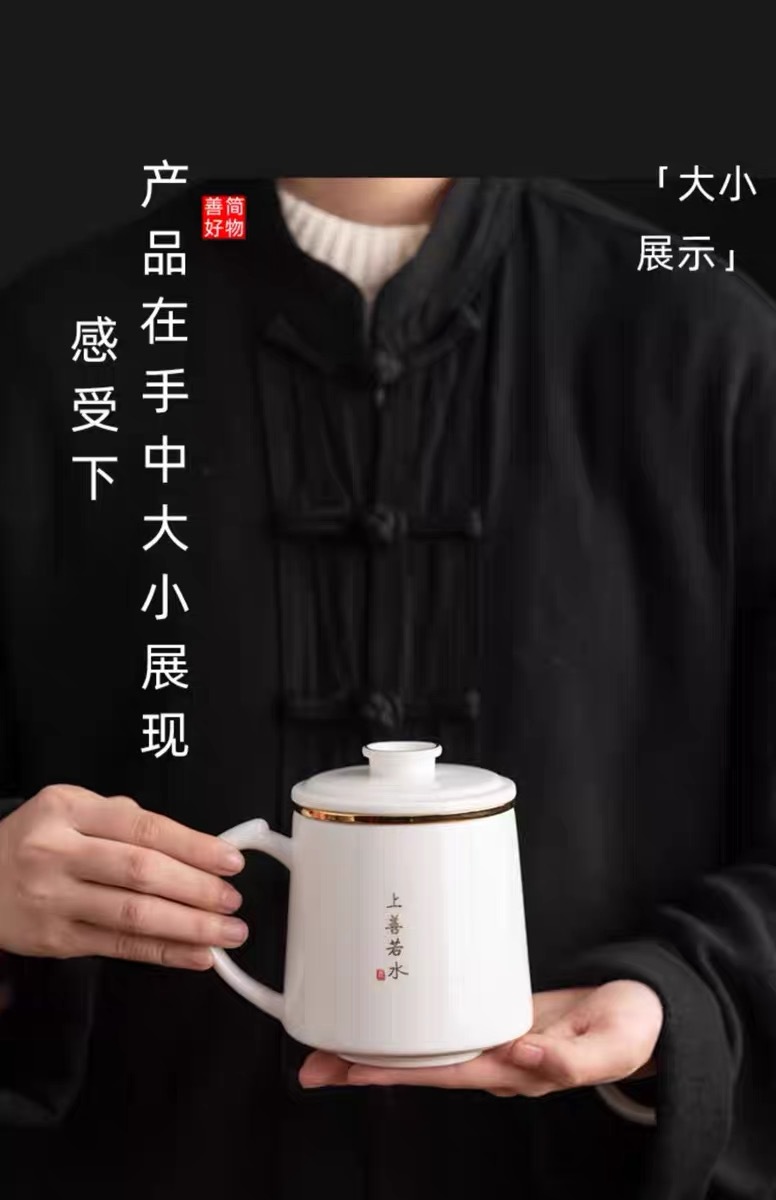 양 지방 옥 차 컵 뚜껑 필터가있는 세라믹 머그잔 차 분리 컵 흰색 도자기 물 컵 사무실 컵 인쇄 로고