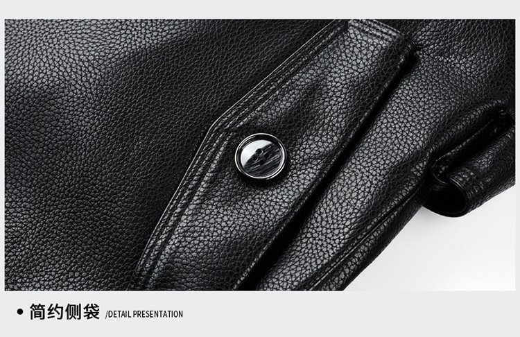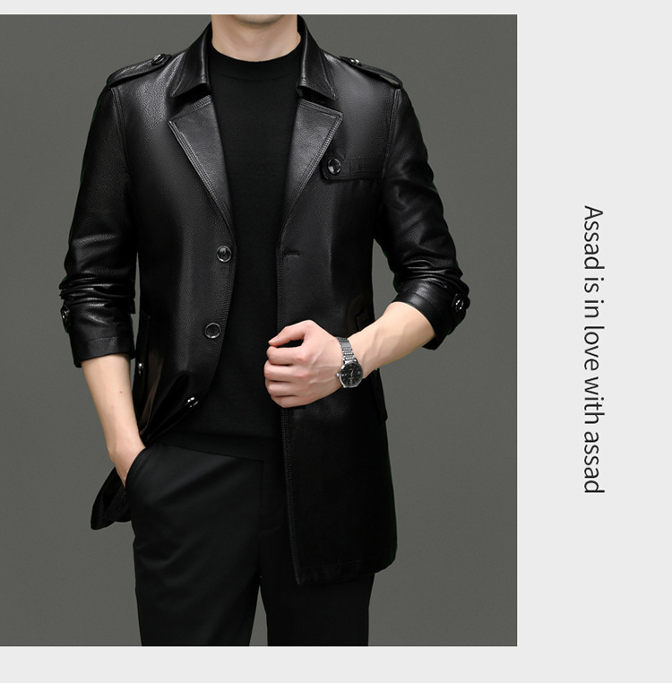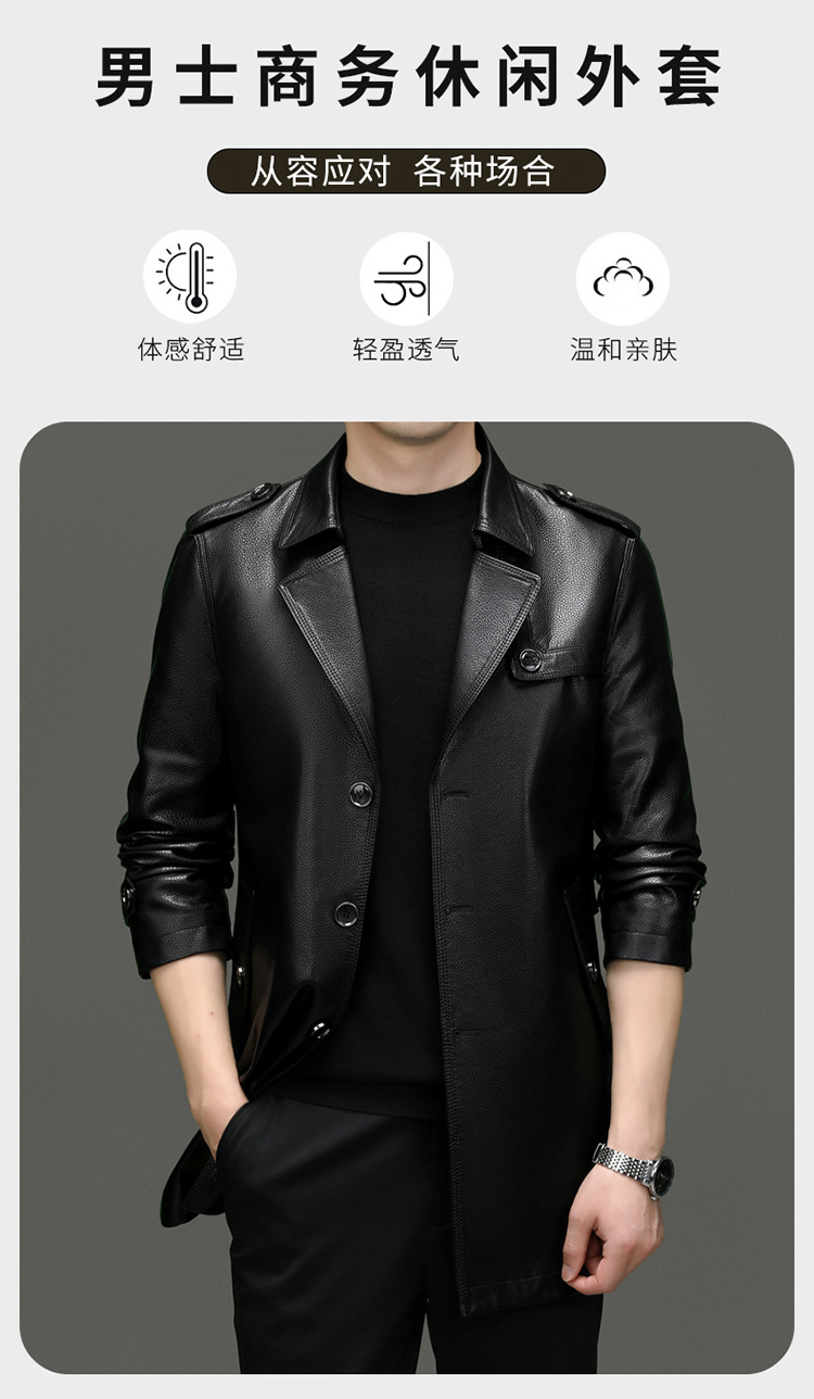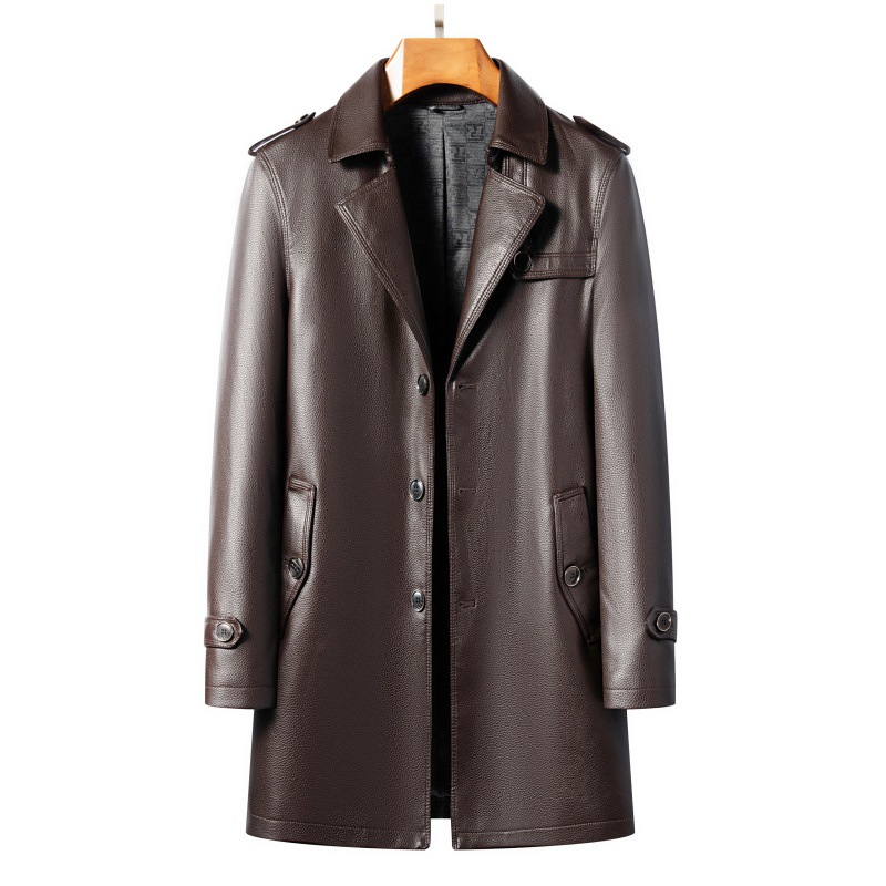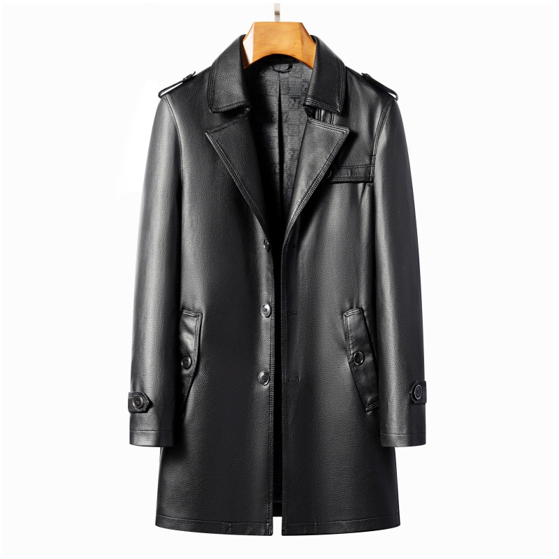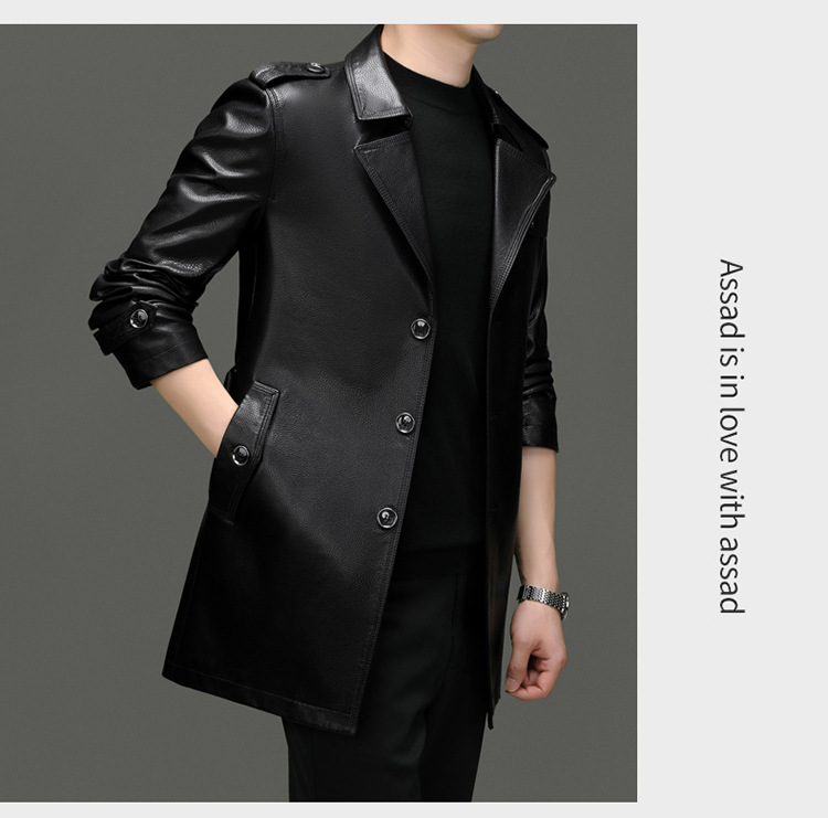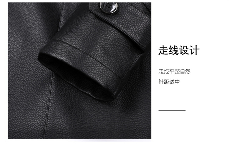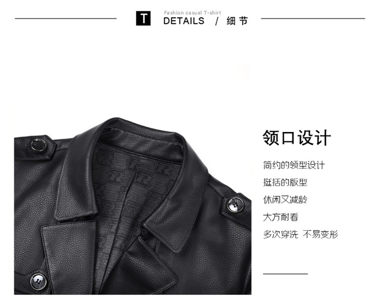 Haining 가죽 자켓 남성 중년 인조 가죽 중간 길이 정장 칼라 가죽 윈드 브레이커 비즈니스 캐주얼 가죽 자켓 아빠 자켓스토어 가기