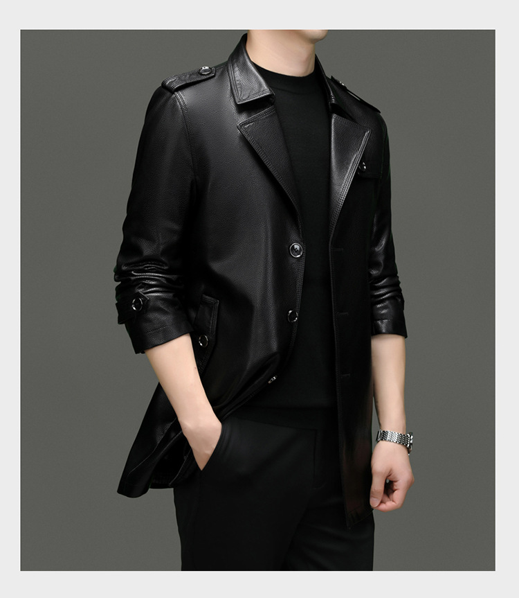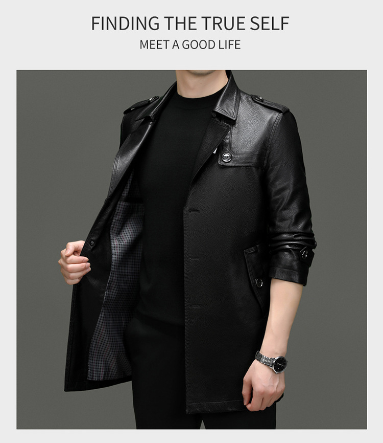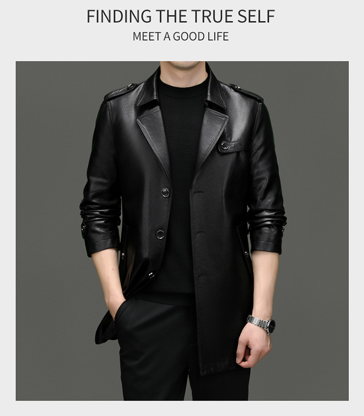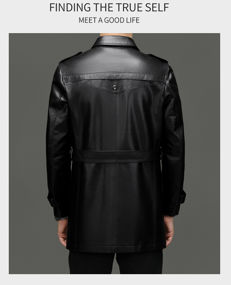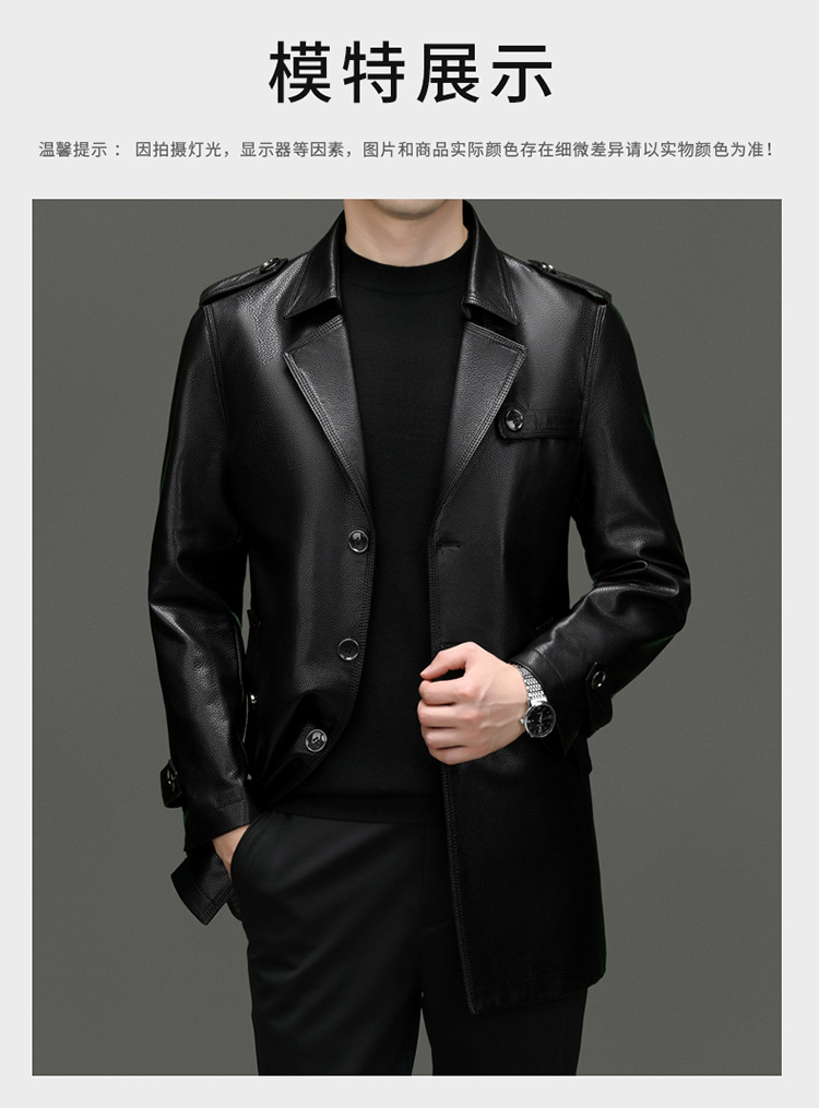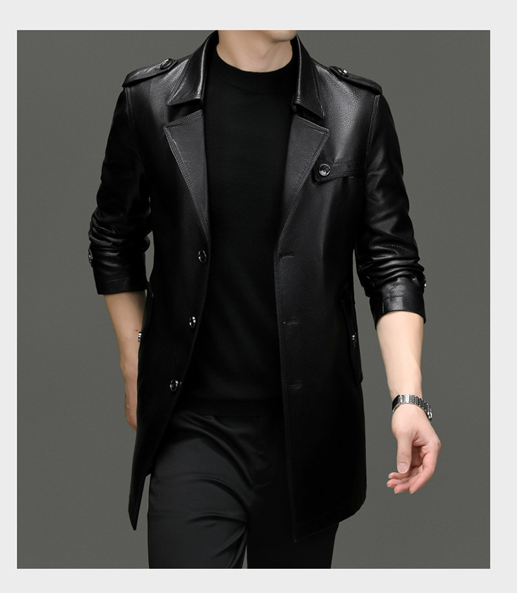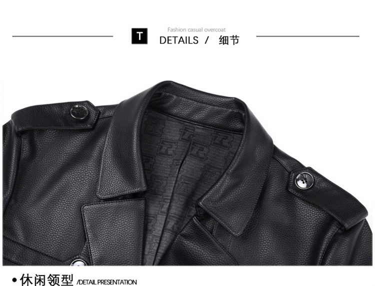 Haining 가죽 자켓 남성 중년 인조 가죽 중간 길이 정장 칼라 가죽 윈드 브레이커 비즈니스 캐주얼 가죽 자켓 아빠 자켓스토어 가기