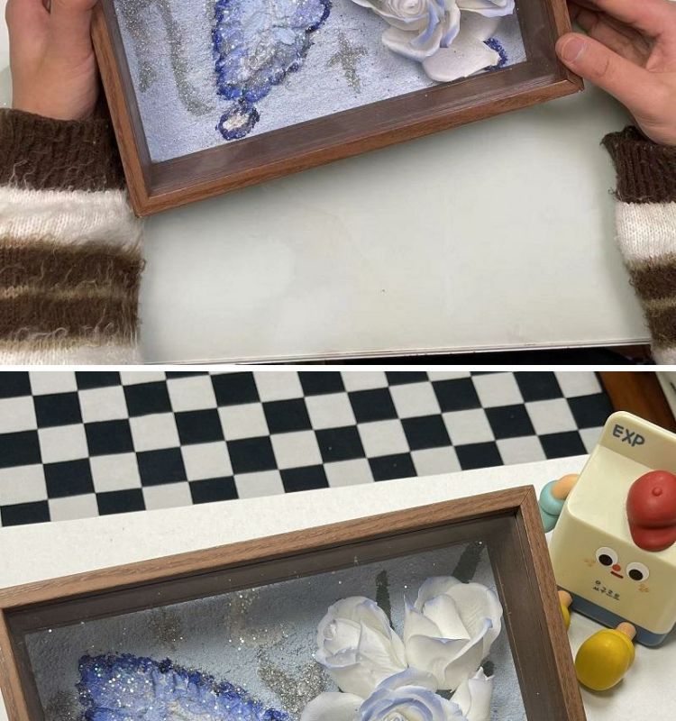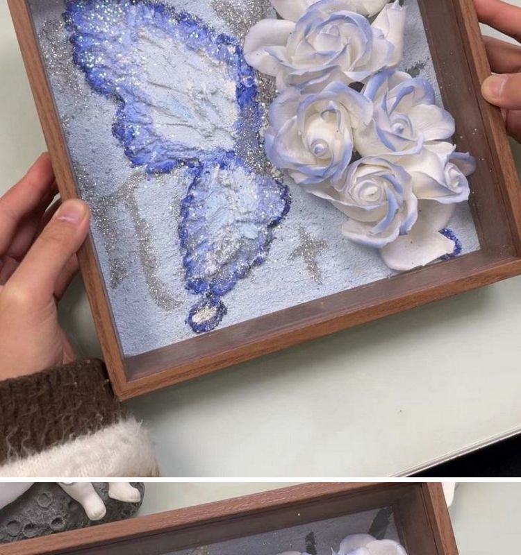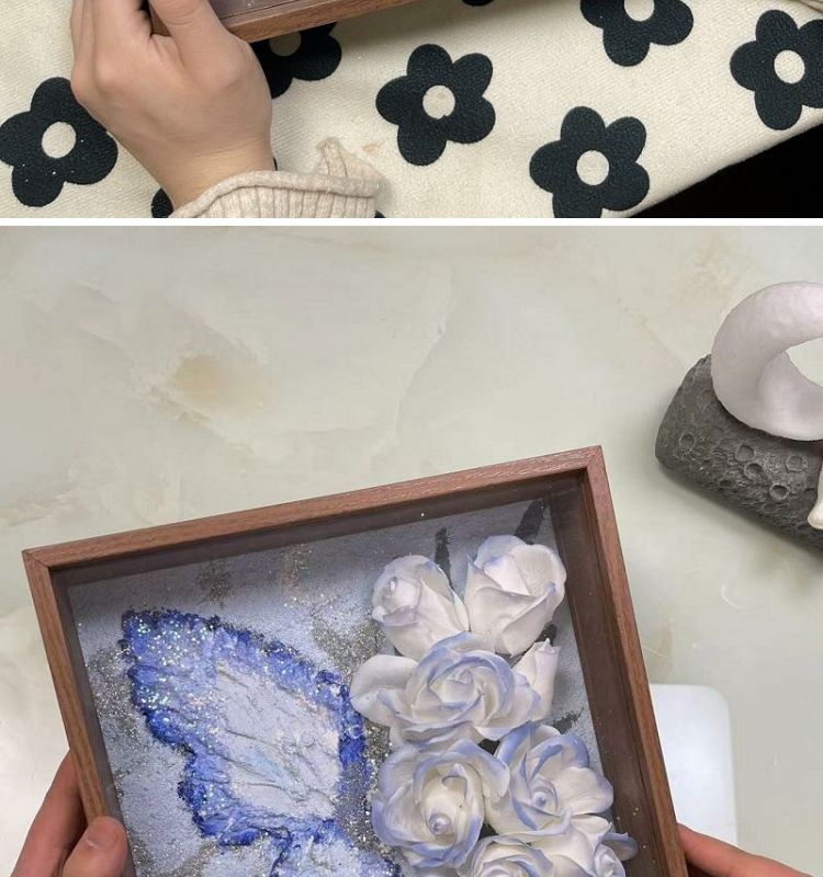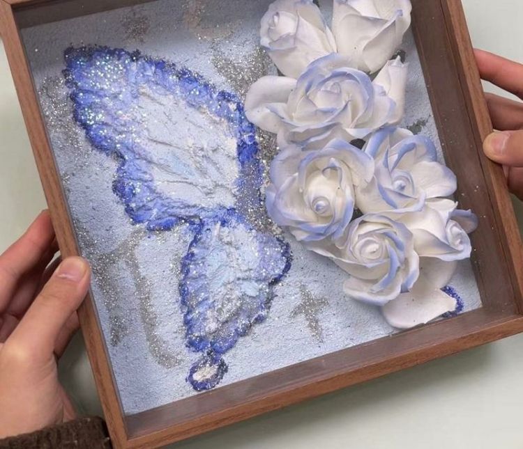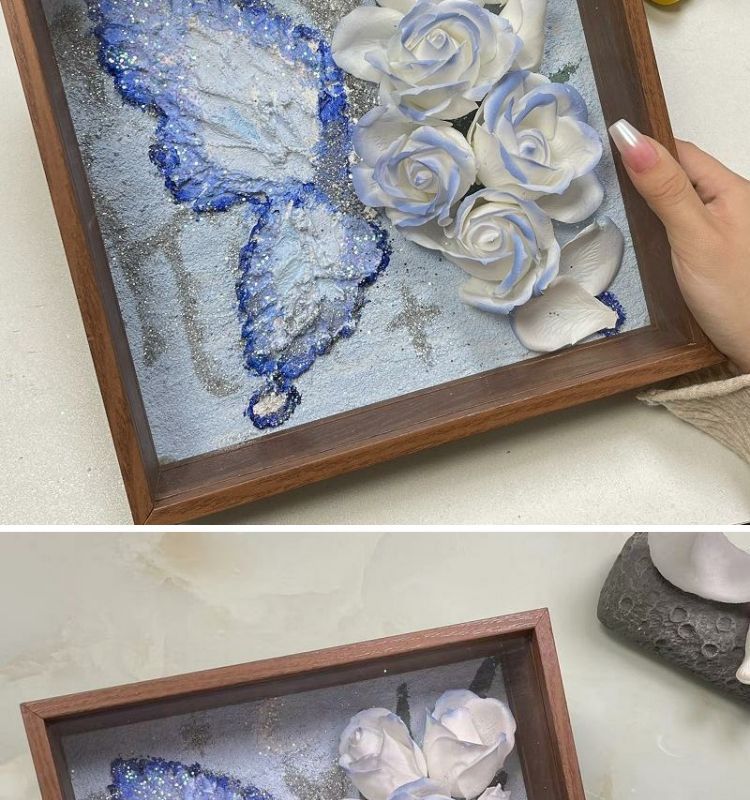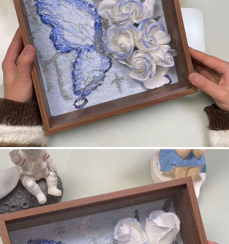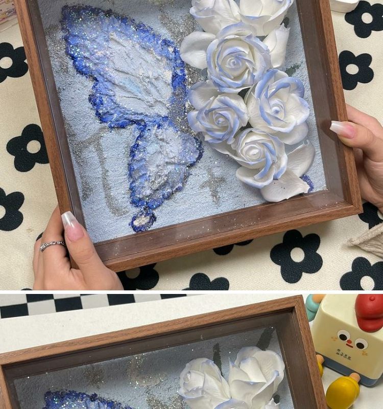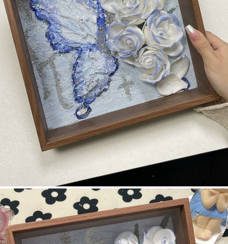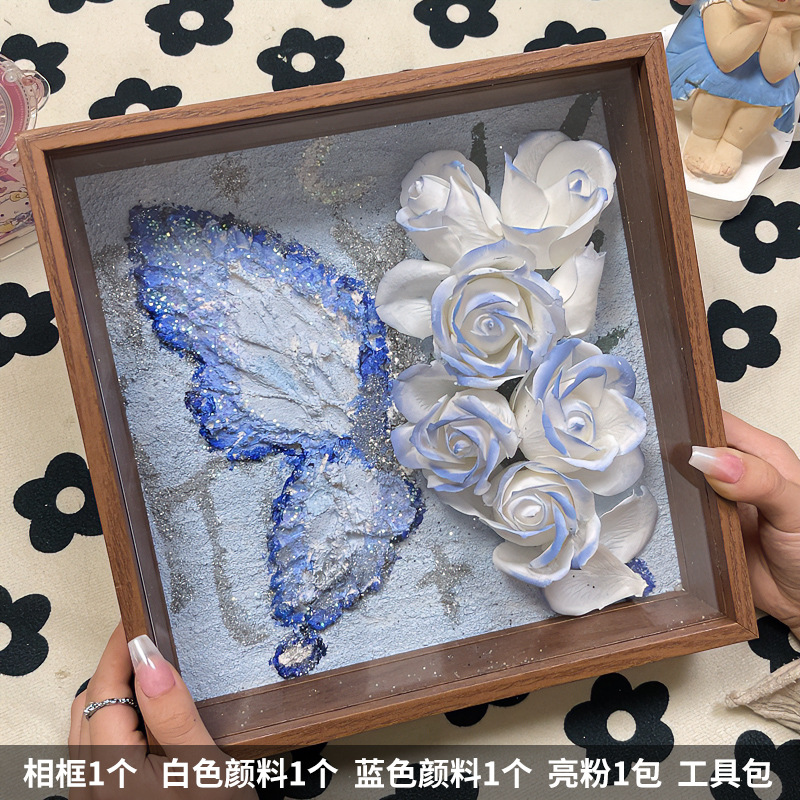 Tiktok 같은 스타일의 수제 DIY 수제 나비 장미 질감 그림 사진 프레임 소재 패키지 장식 테이블 장식 선물