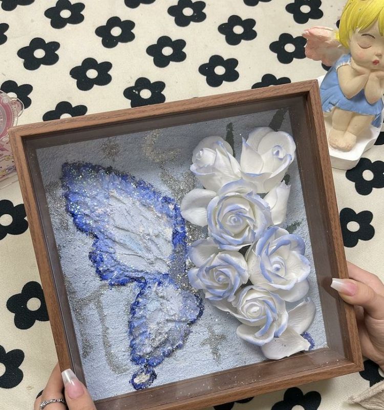 Tiktok 같은 스타일의 수제 DIY 수제 나비 장미 질감 그림 사진 프레임 소재 패키지 장식 테이블 장식 선물스토어 가기