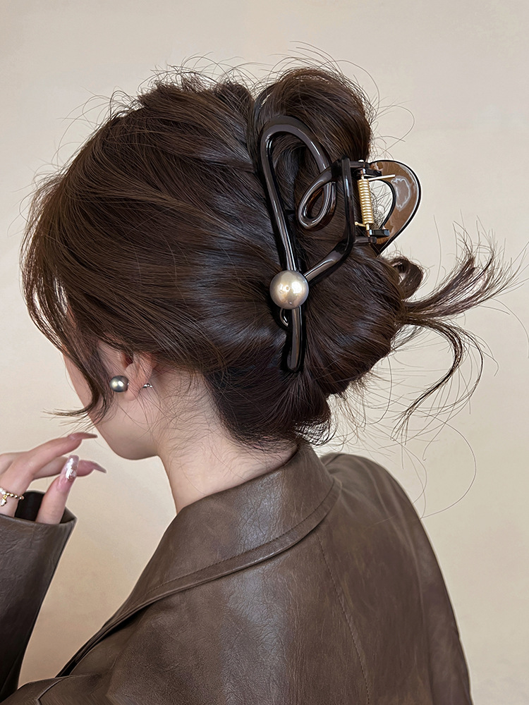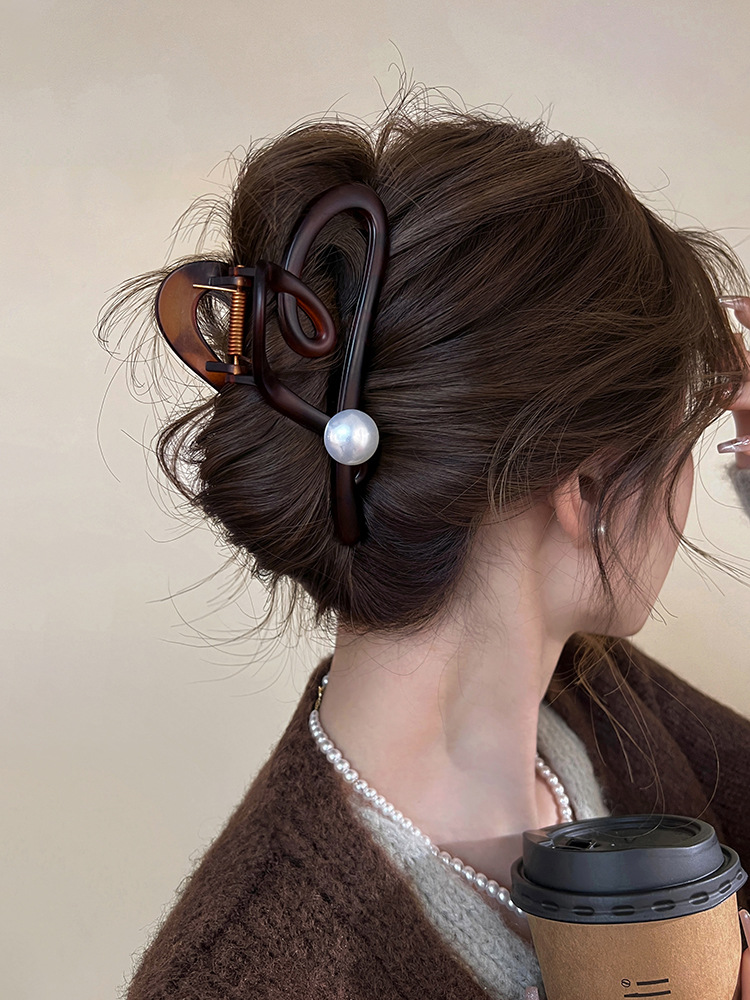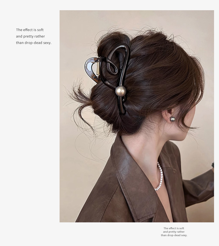고급 기질 속이 빈 사랑스러운 진주 머리핀 여성 고급 대형 그립 백 상어 클립 머리핀스토어 가기