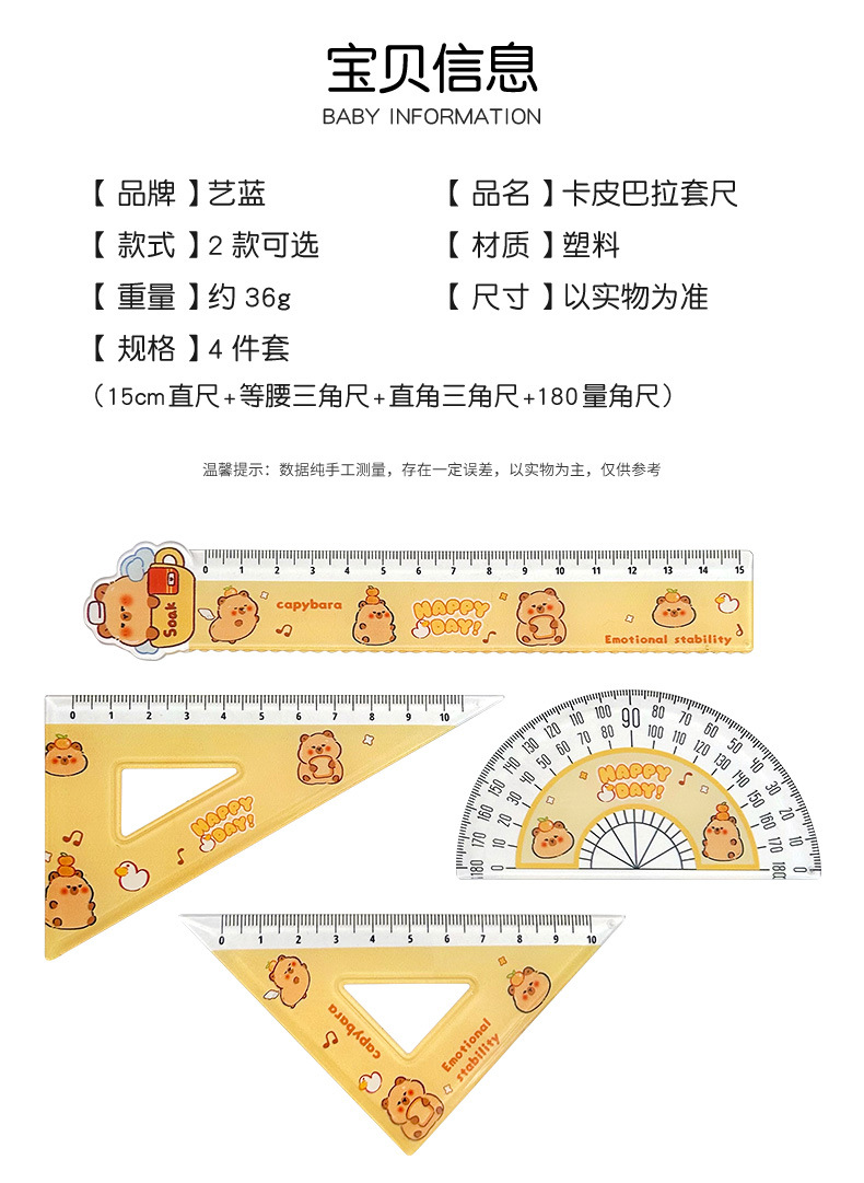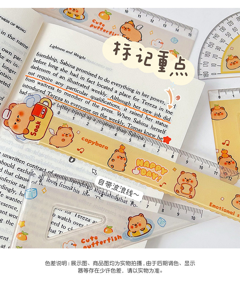 카파 발라 통치자 세트 귀여운 카피 바라 4 종 통치자 문구 학생 높은 모습 15cm 규모