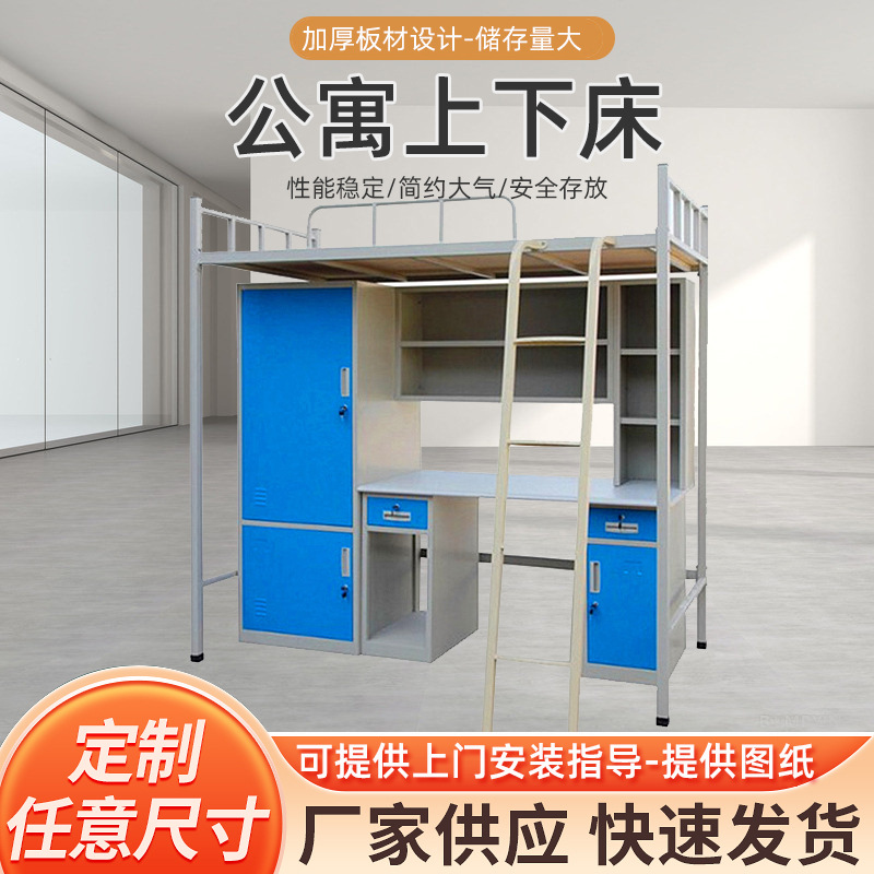 상부 및 하부 아파트 침대 상부 및 하부 이층 침대 하부 테이블 기숙사 직원 철제 침대 대학 침실 더블 레이어 및 낮은 침대 바닥스토어 가기