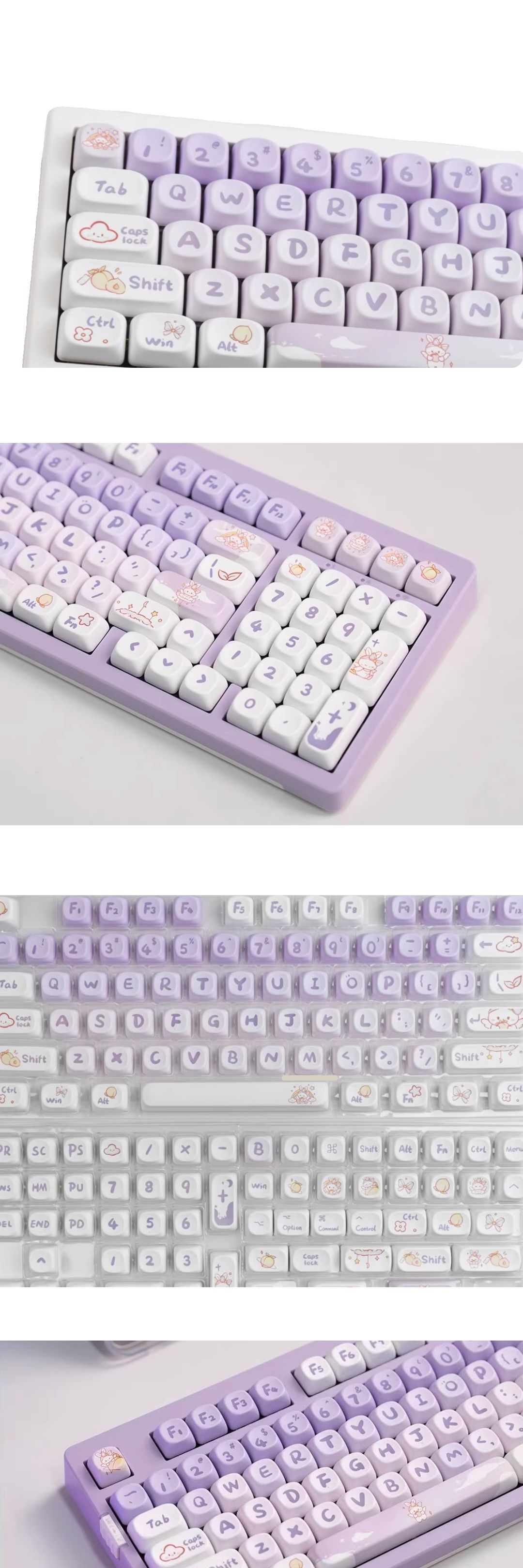 그라디언트 보라색 토끼 키 캡 MOA 높이 PBT 키 캡 5 면 승화 귀여운 맞춤형 큰 키 캡 전체 세트스토어 가기