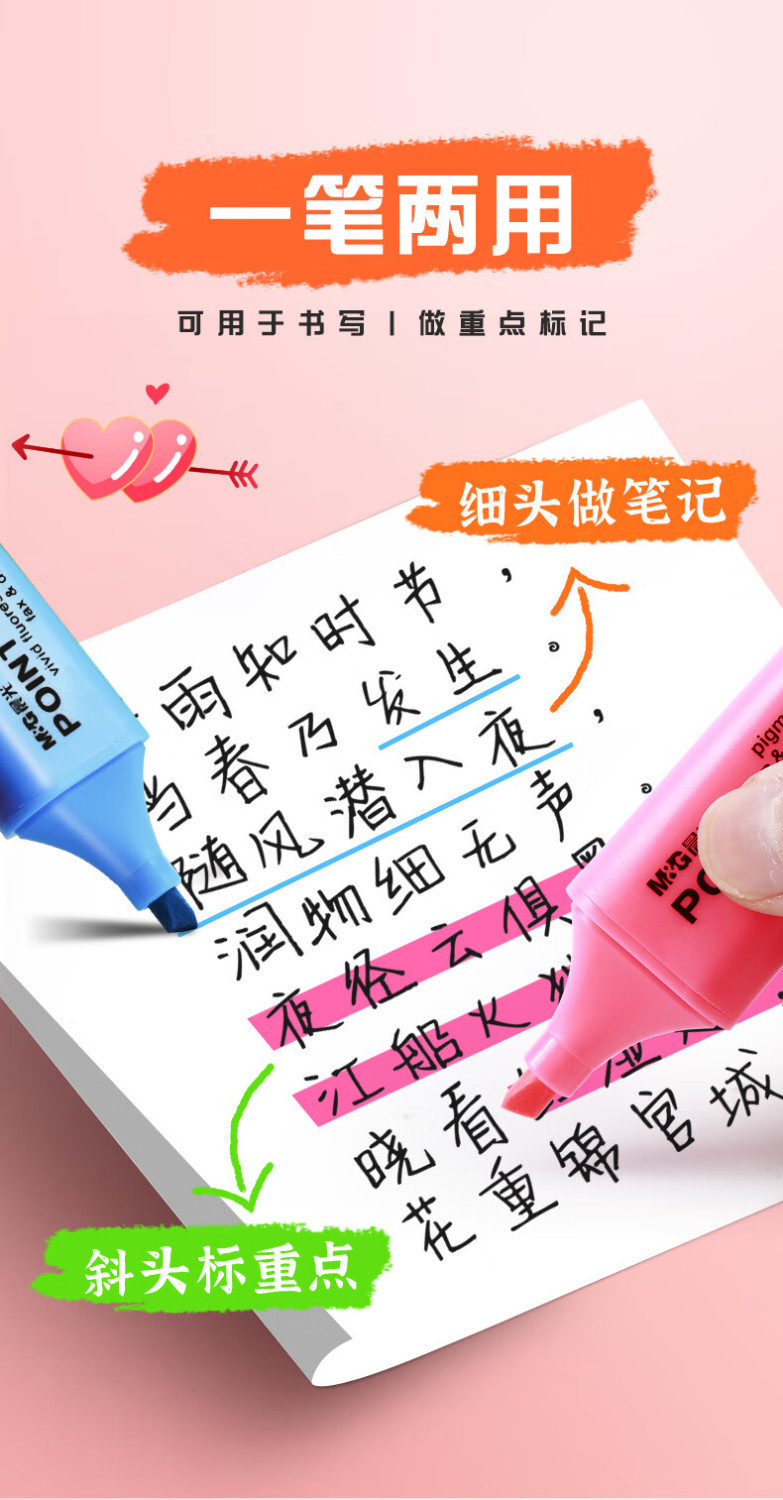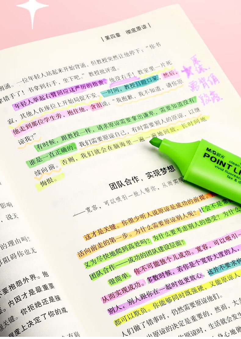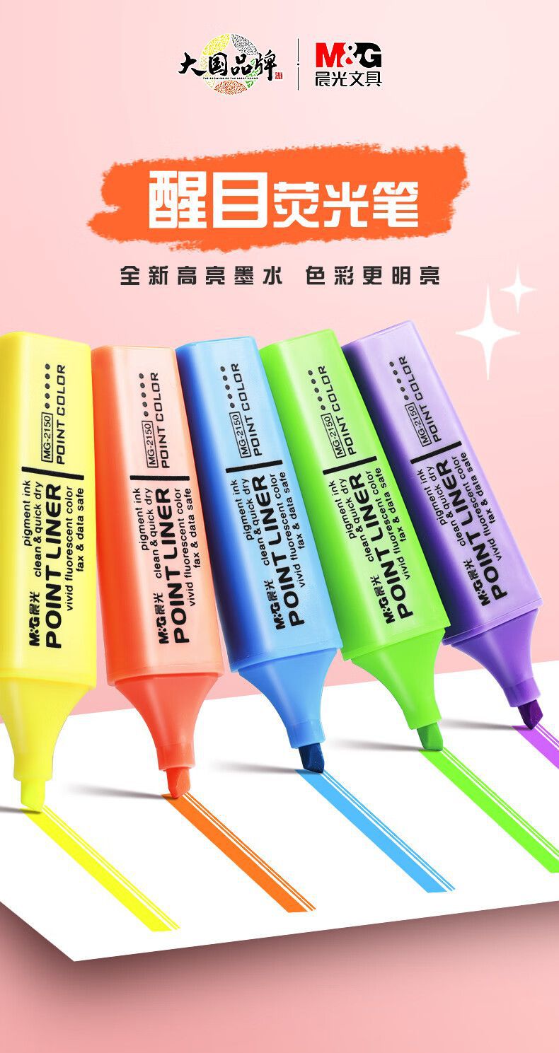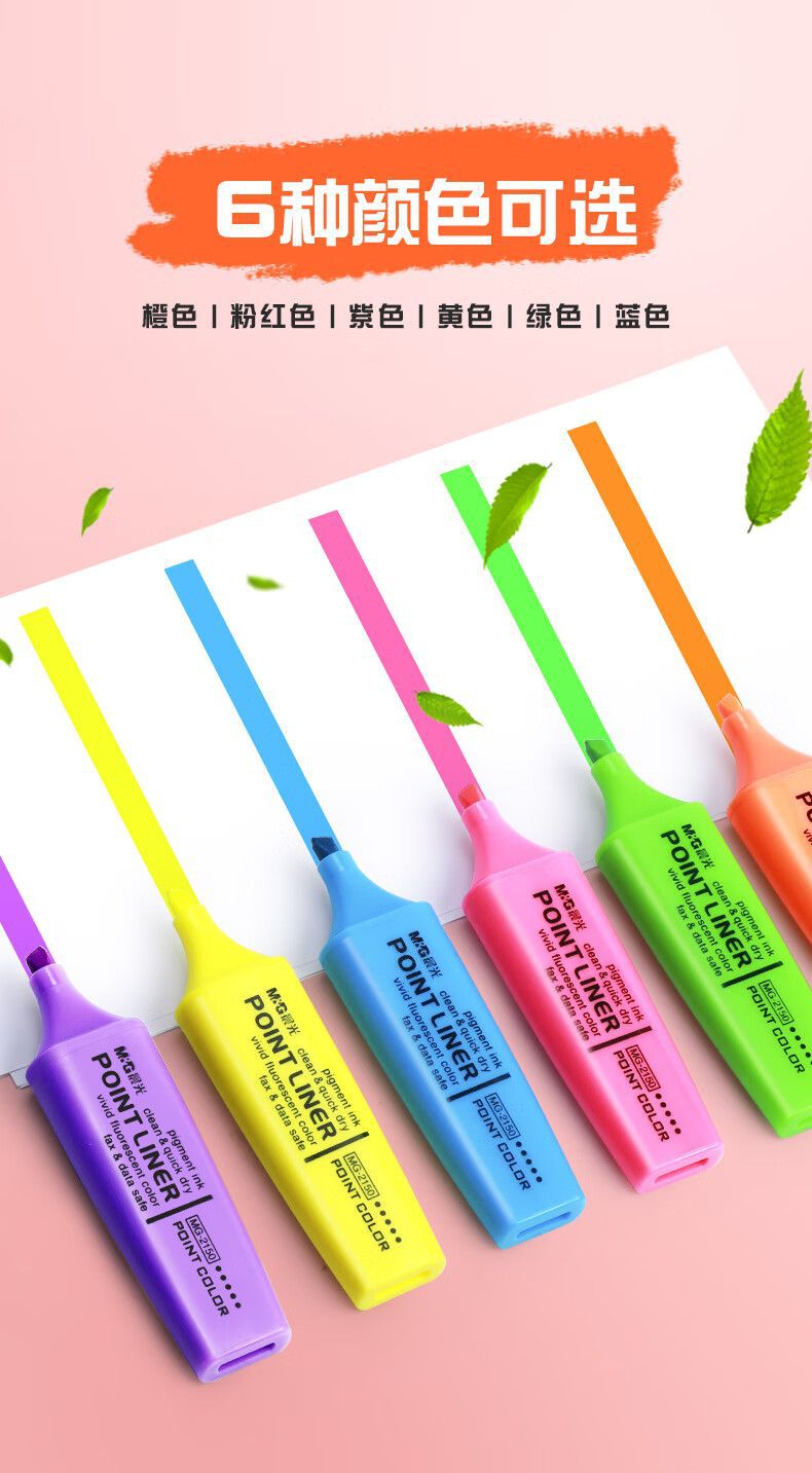 Chengguang 하이라이트 펜 큰 머리 6 색 대용량 마킹 키 펜 높은 찾고 특수 펜 학생들이 메모