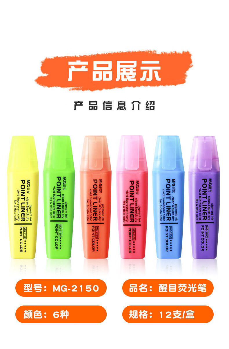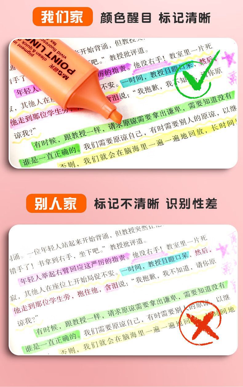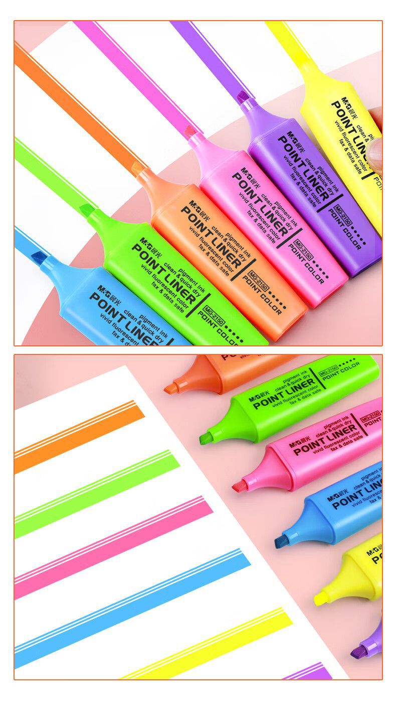 Chengguang 하이라이트 펜 큰 머리 6 색 대용량 마킹 키 펜 높은 찾고 특수 펜 학생들이 메모스토어 가기