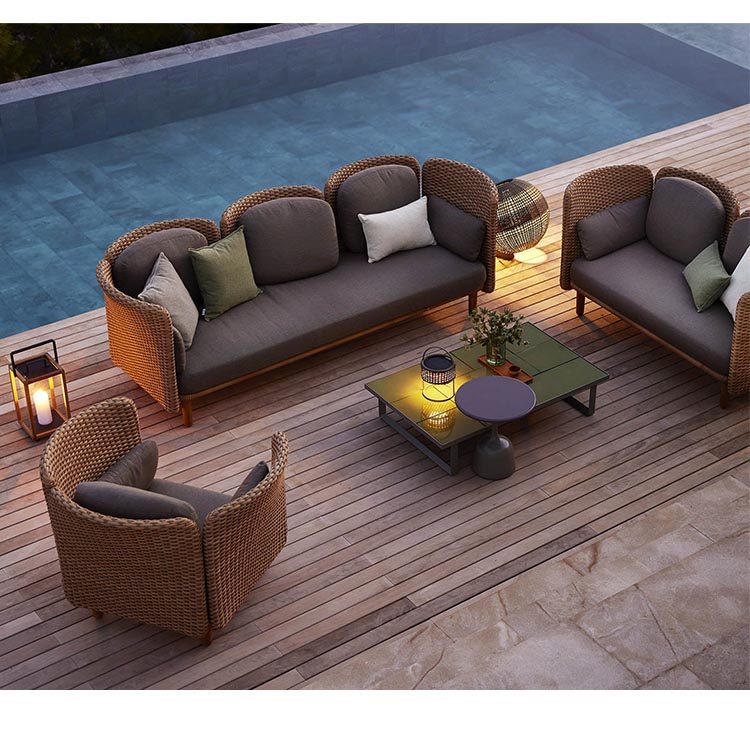 야외 새로운 동남 아시아 등나무 소파 의자 정원 야외 방수 창조적 인 야외 빌라 안뜰 가구 조합